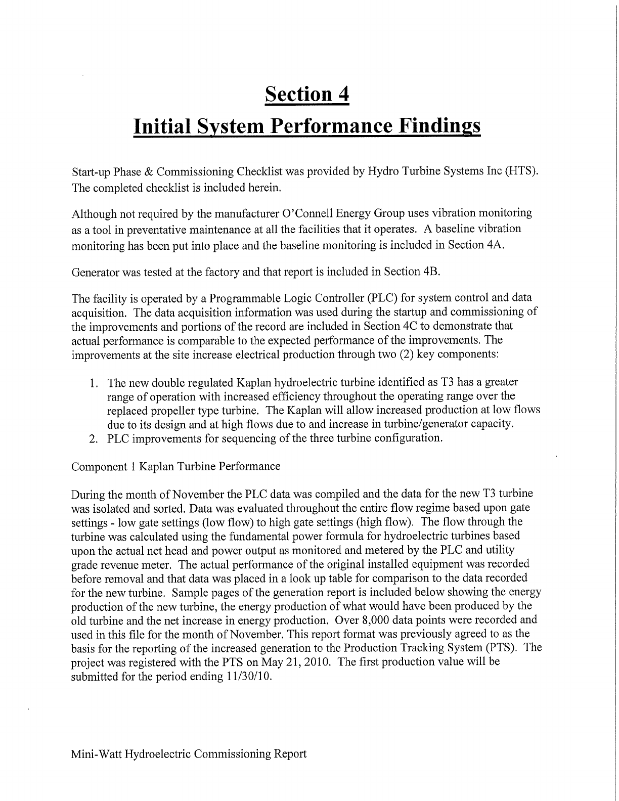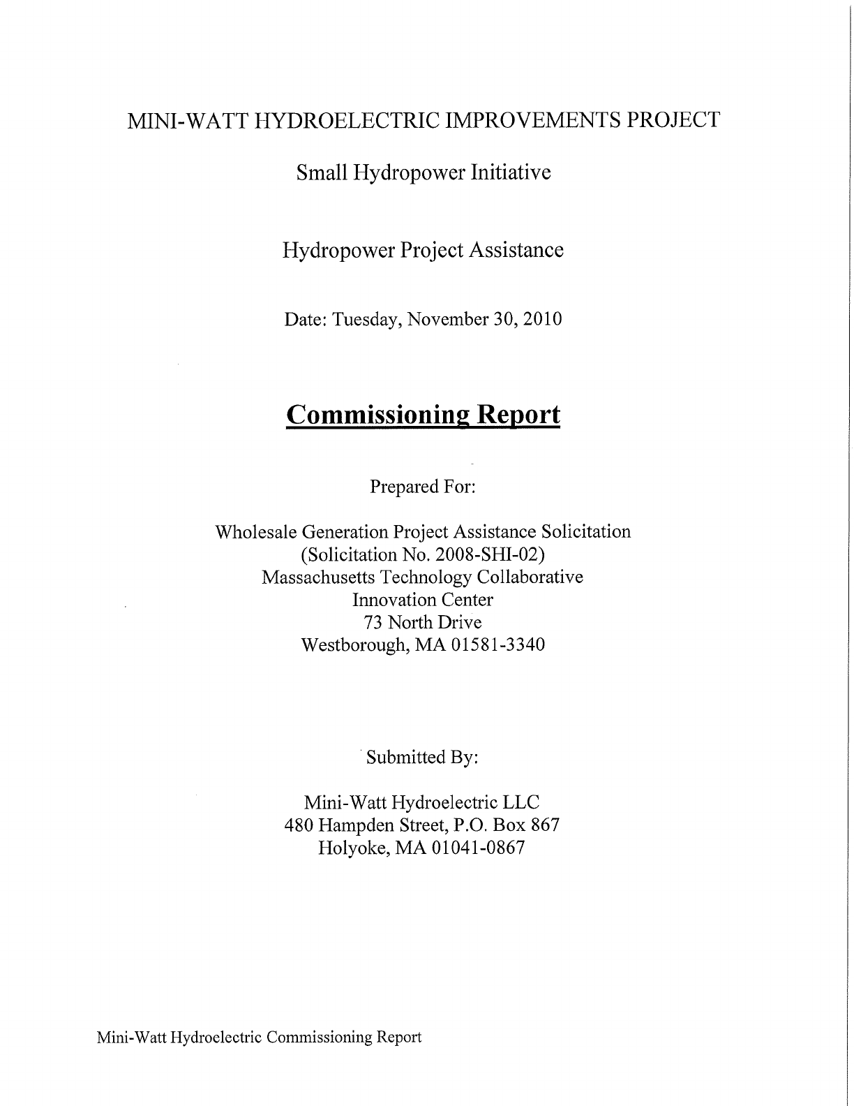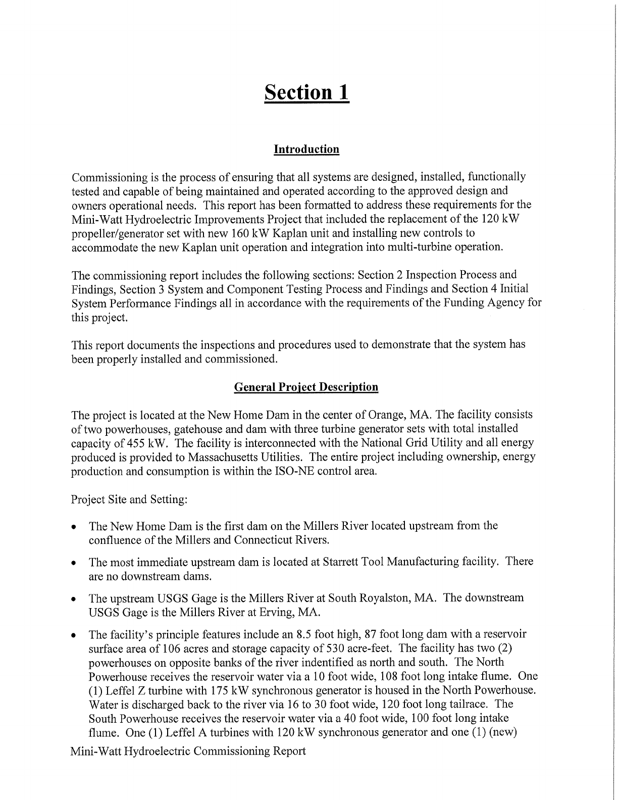 MINI-WATT HYDROELECTRIC IMPROVEMENTS PROJECT