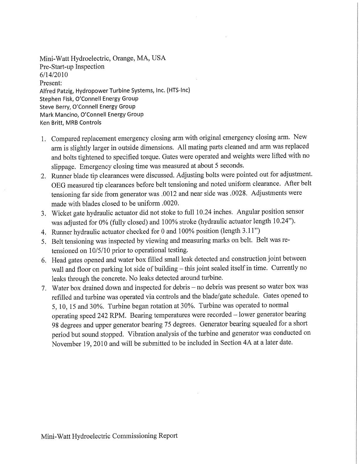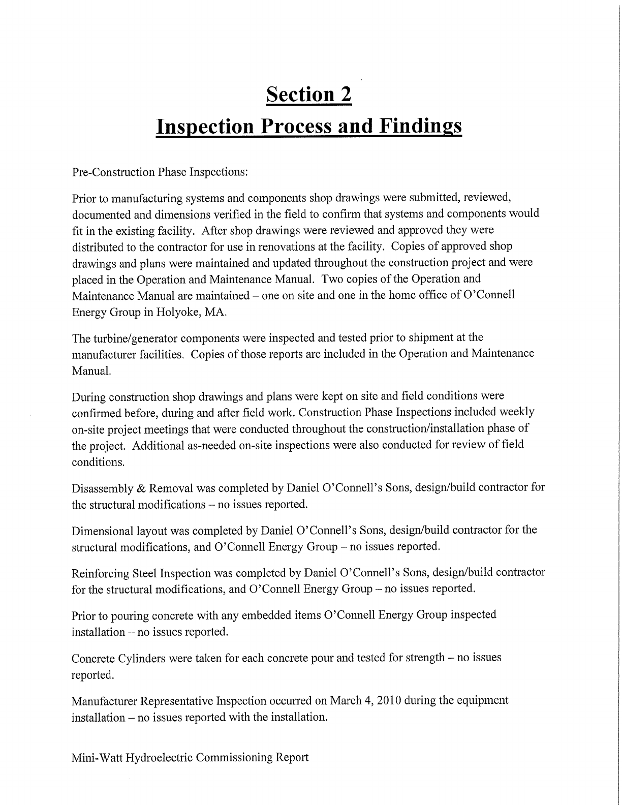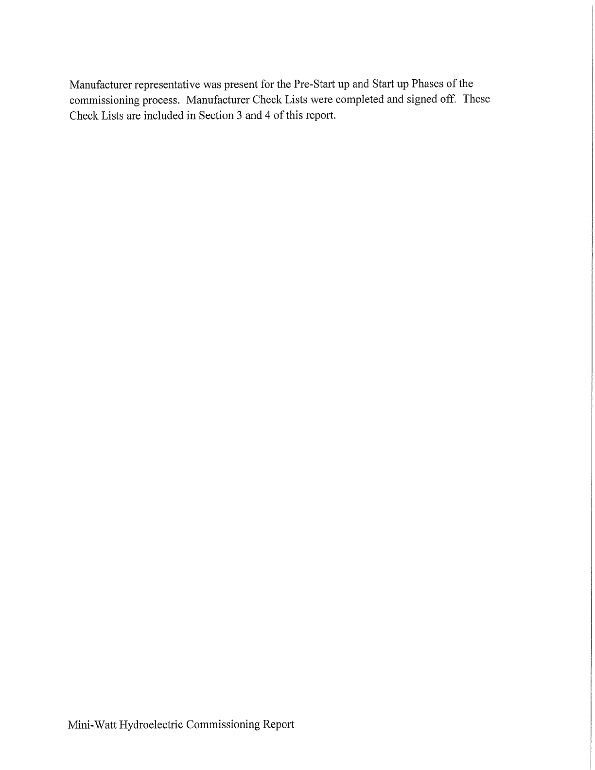 MINI-WATT HYDROELECTRIC IMPROVEMENTS PROJECT