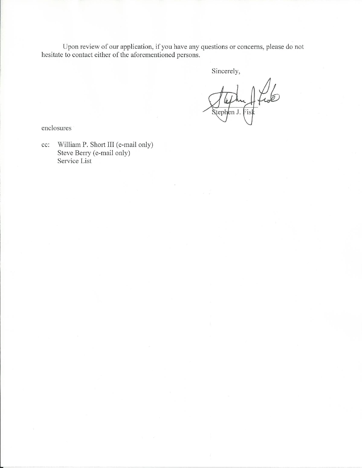 William P. Short III Stephen J. Fisk
