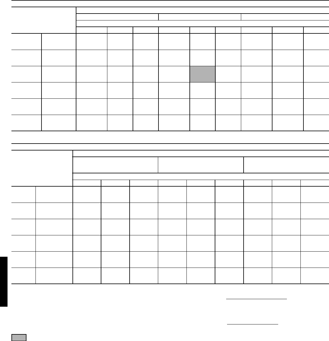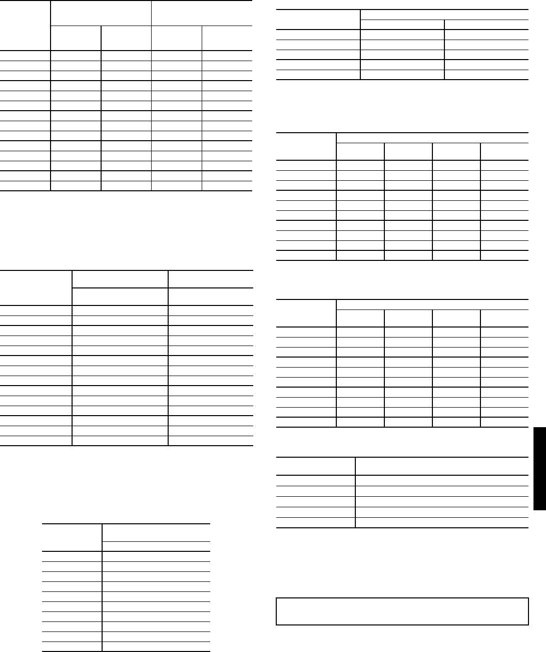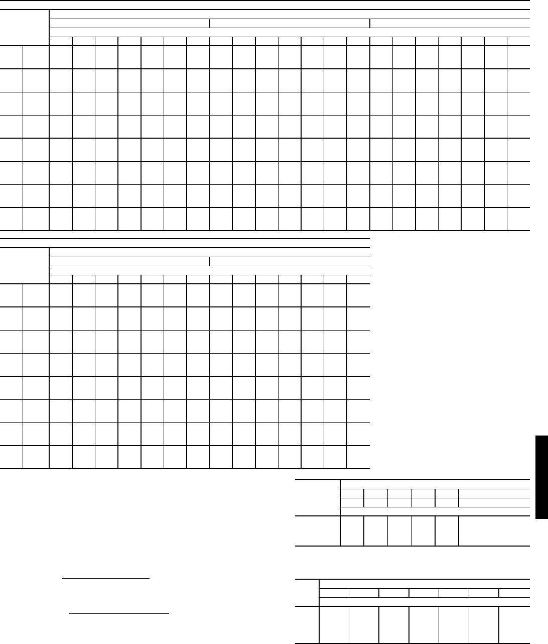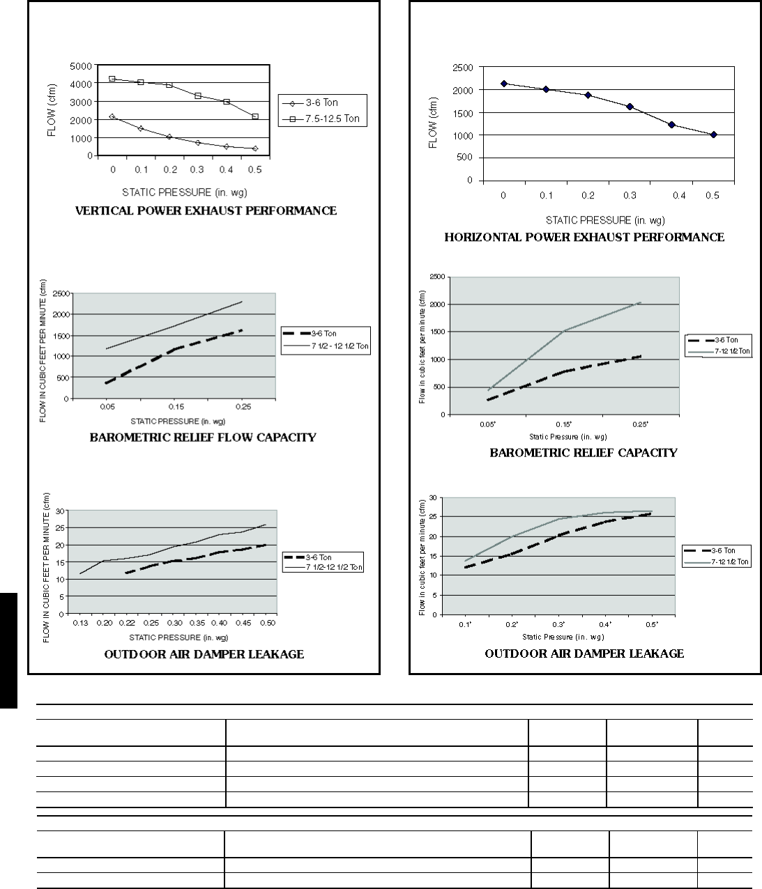 Fan performance tables