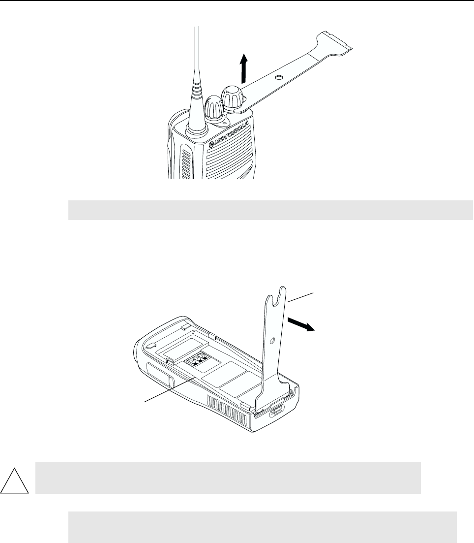 ●When worn on the body, always place the radio in a Motorola-approved clip, holder, holster, case,