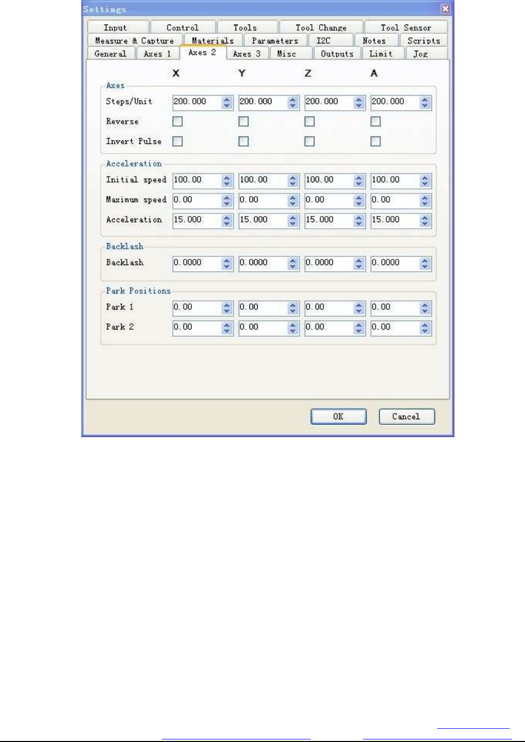 3.AXES2 is the step, speed,acceleration speed,and backlash etc setting