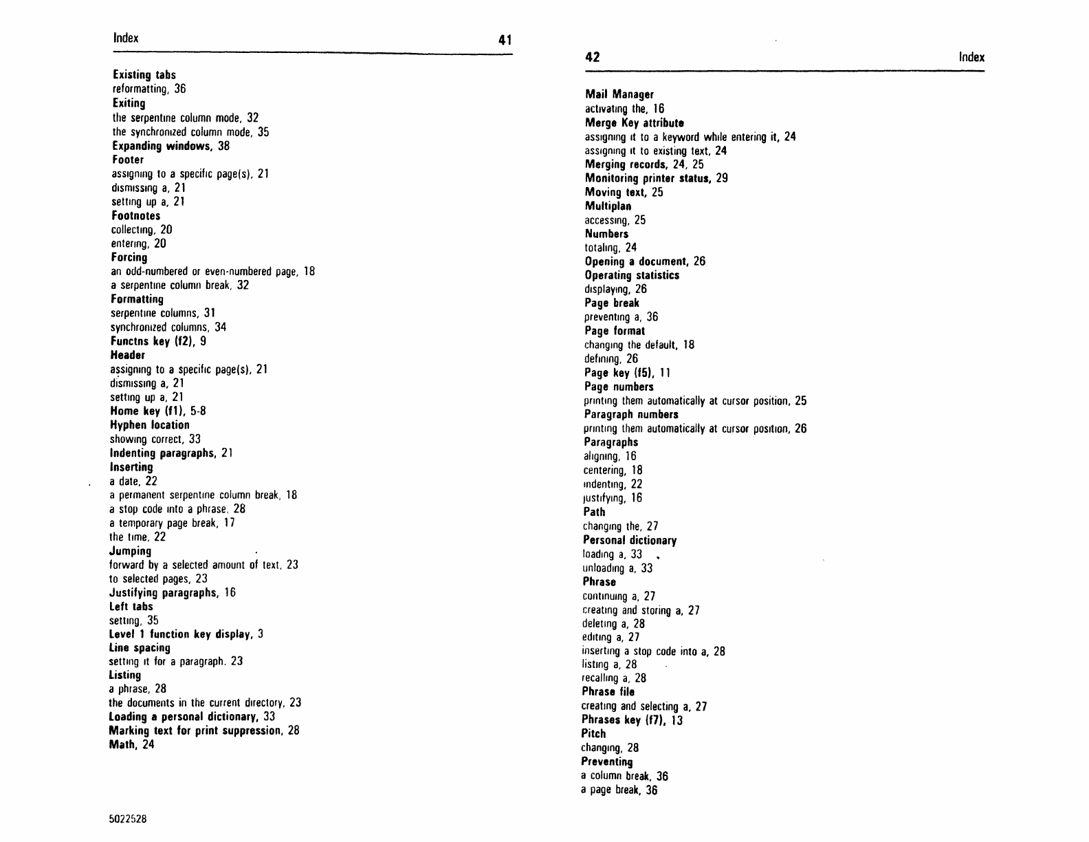 User Manual: 5022528_Professional_Word_Proc_Quick_Ref_Sep85