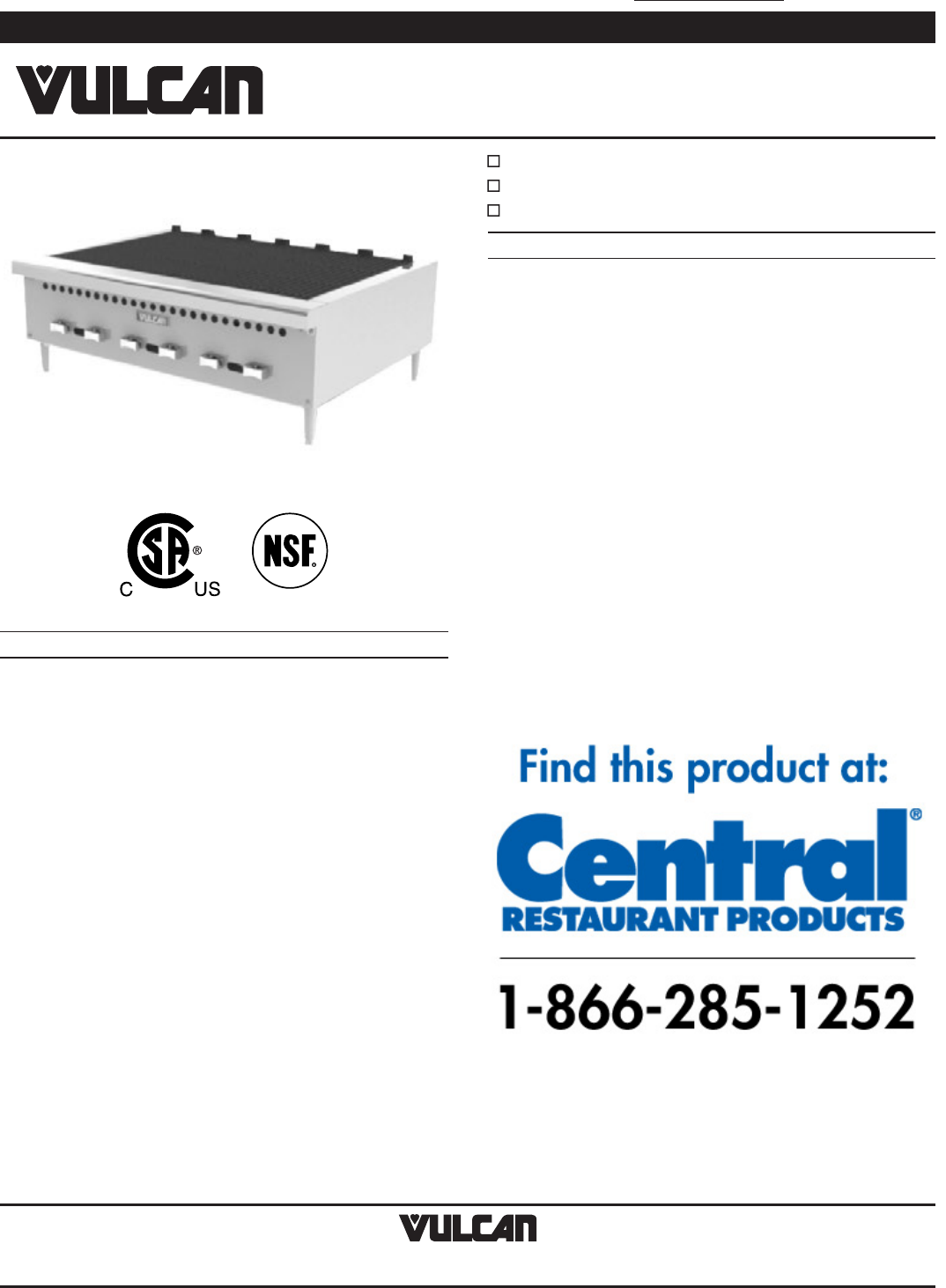 Vulcan Restaurant Series Gas Charbroiler VCRB Spec Sheet VCRB36 515 224
