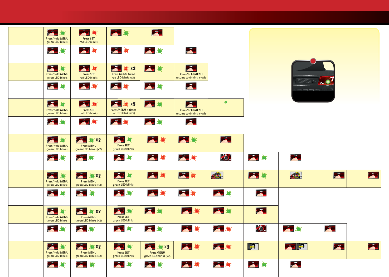 3. Press SET. The red LED will blink in single intervals to indicate Steering