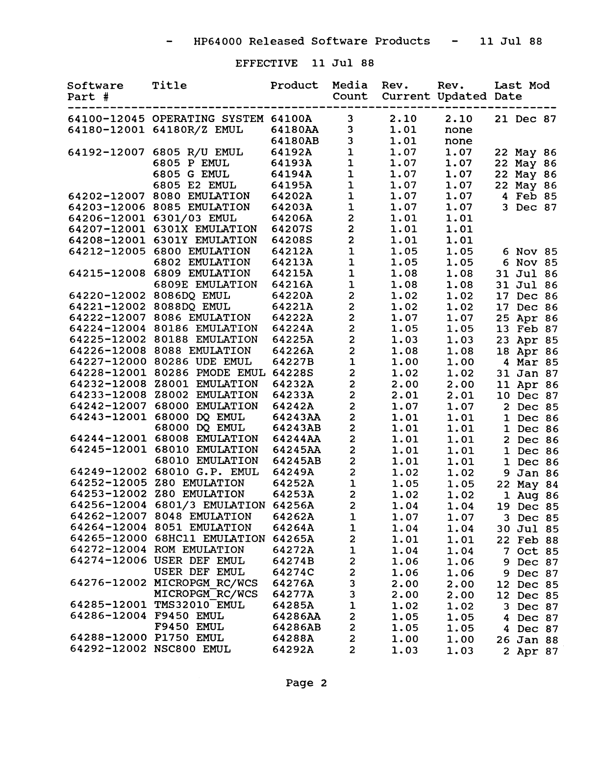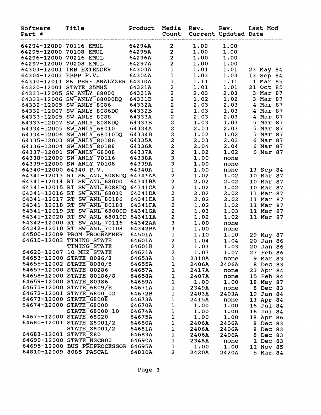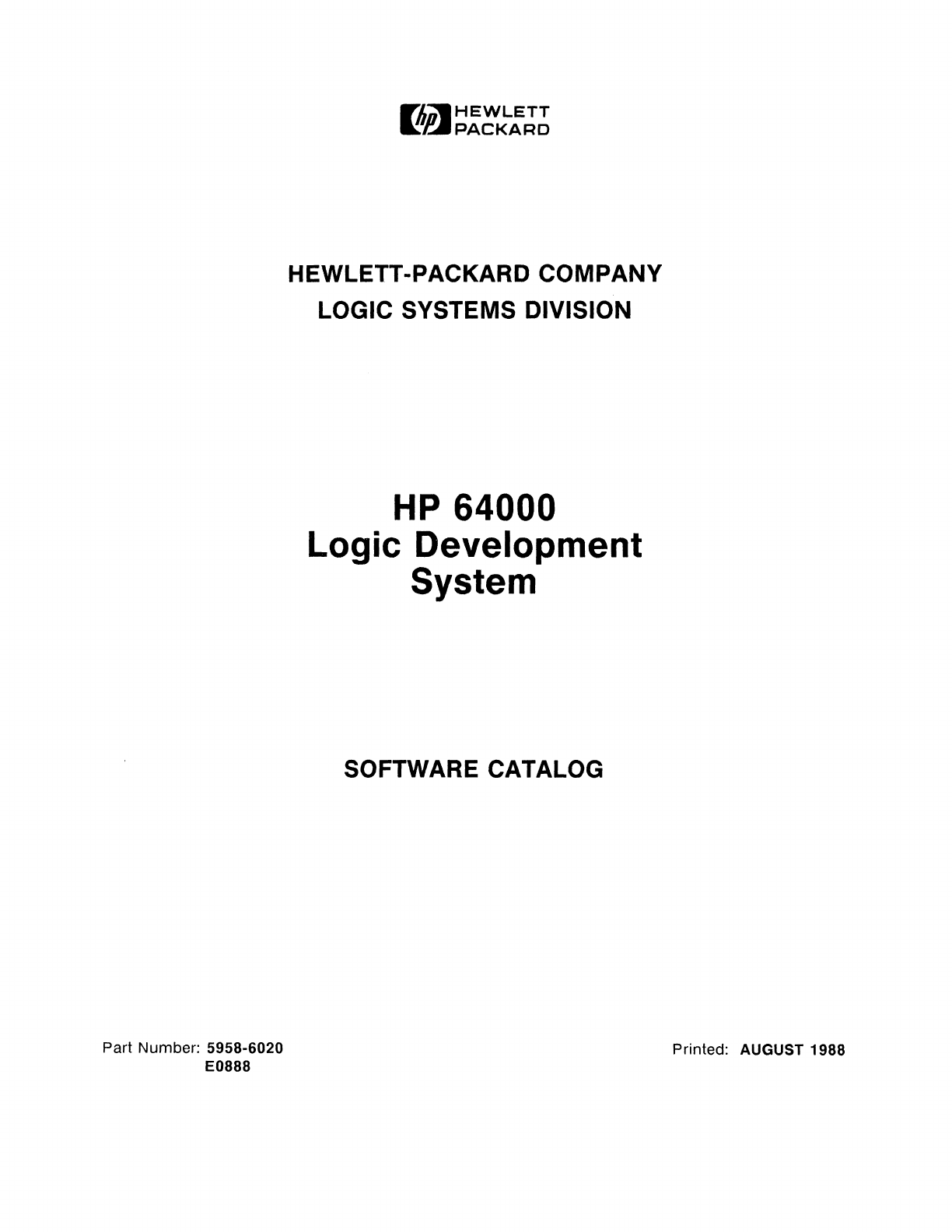 HP 64000 Logic Development System Software Catalog 5958 6020_Aug 1988 6020 Aug