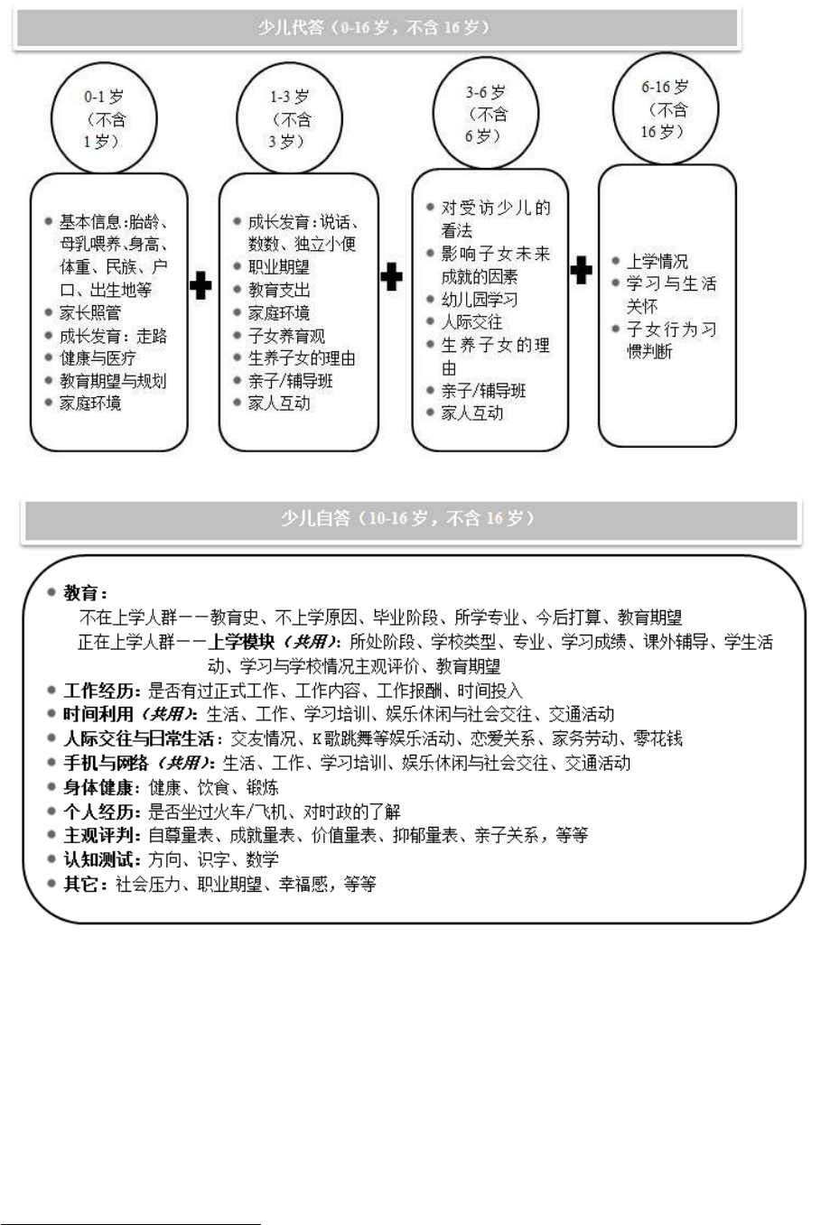 一,CFPS 项目的设计理念与方法。如抽样的方法、加权的方法、测量工具的使用、问