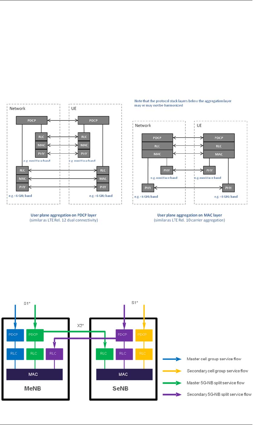 inter-working with LTE-A or the support of different functional split in C-RAN or D-RAN