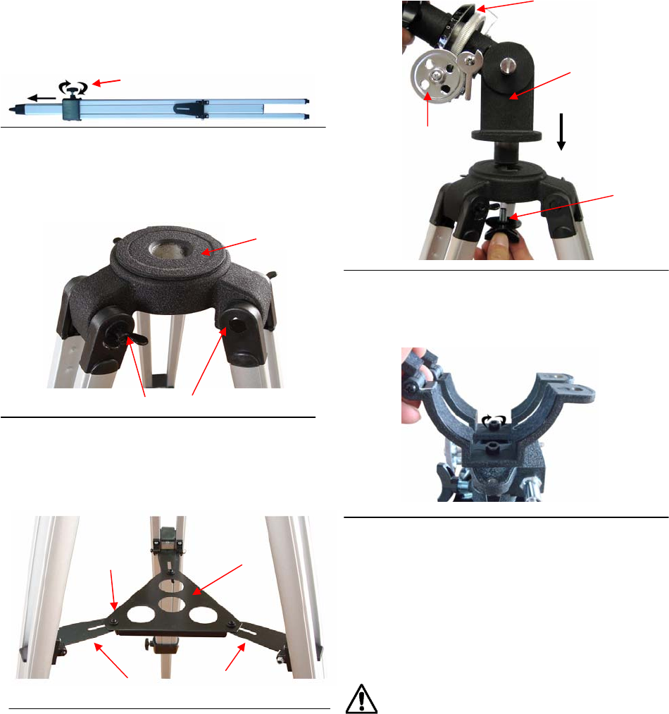 spreading the tripod's legs out uniformly. Attach