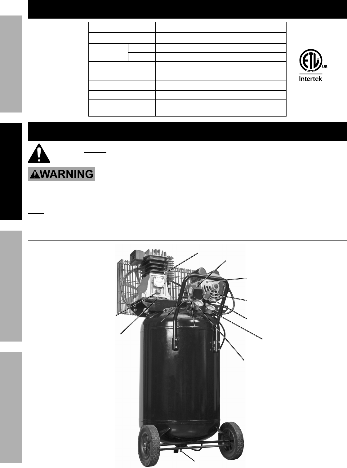 User Manual: Manual for the 62765 29 gal. 2 HP 150 PSI Cast Iron Vertical Air Compressor 29 gal. 2 HP 150 PSI Cast Iron Vertical Air Compressor