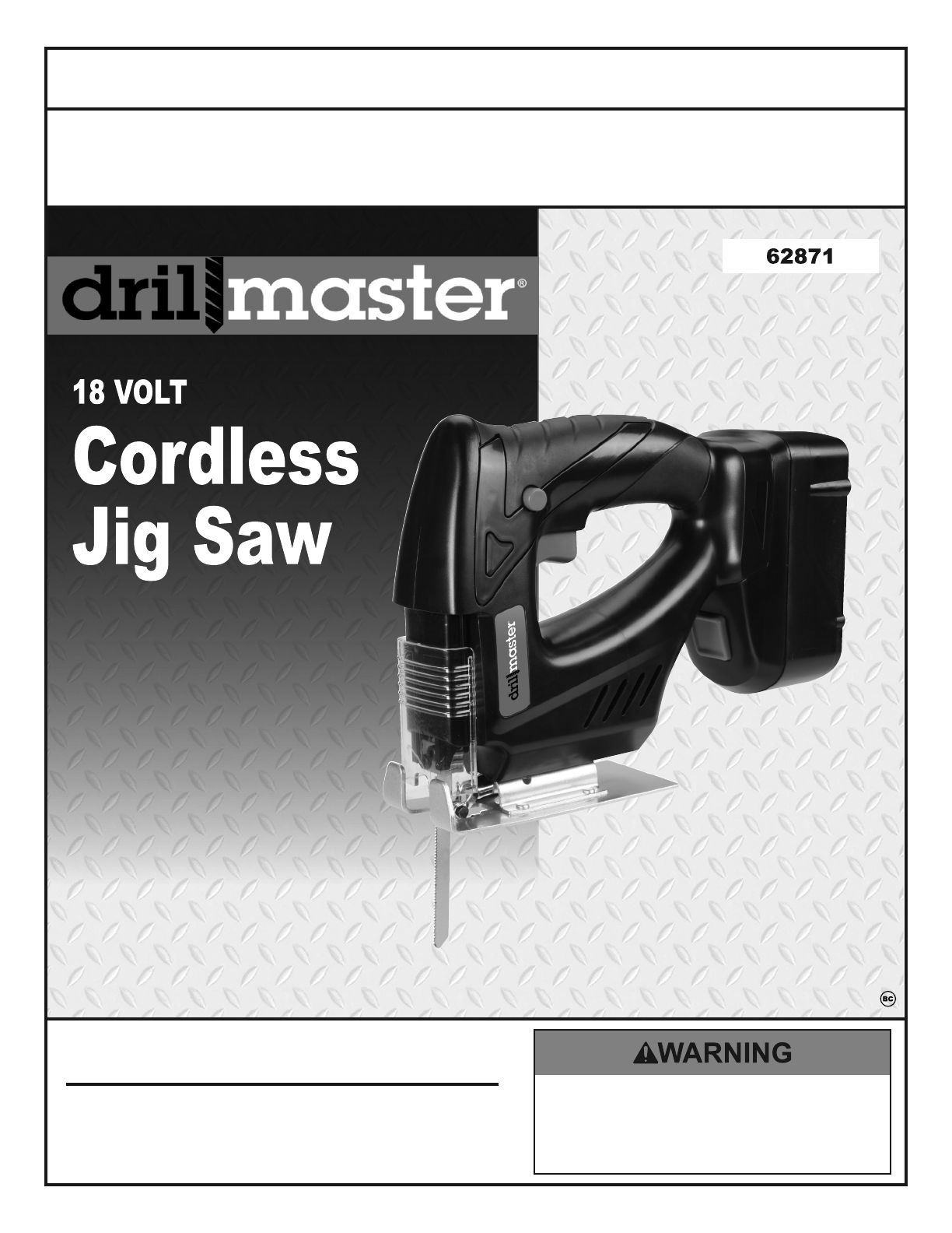 Manual For The 62871 18 Volt Cordless Jig Saw