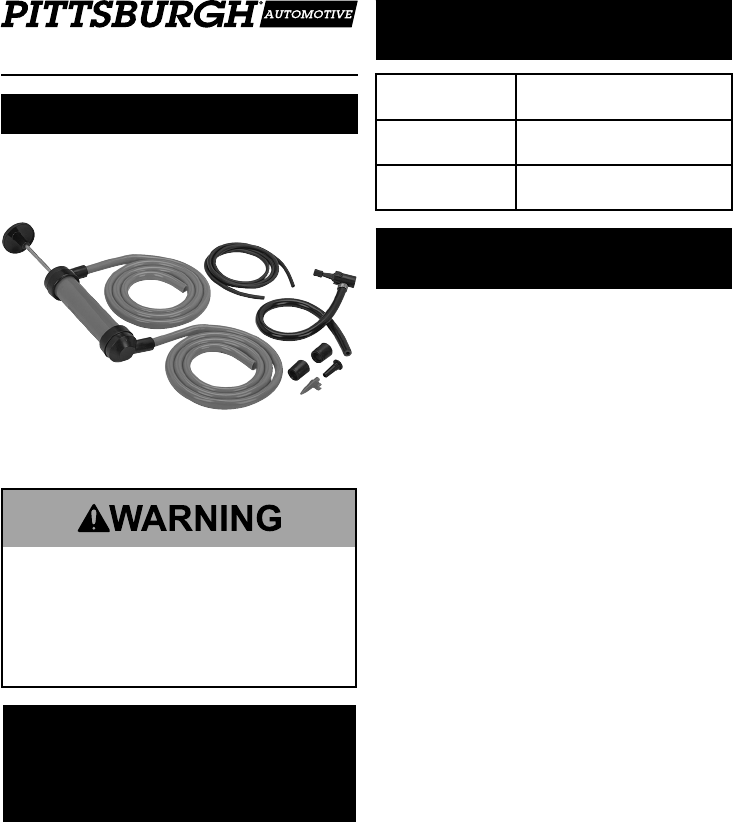 User Manual: Manual for the 63144 Multi-Use Transfer Pump Multi-Use Transfer Pump