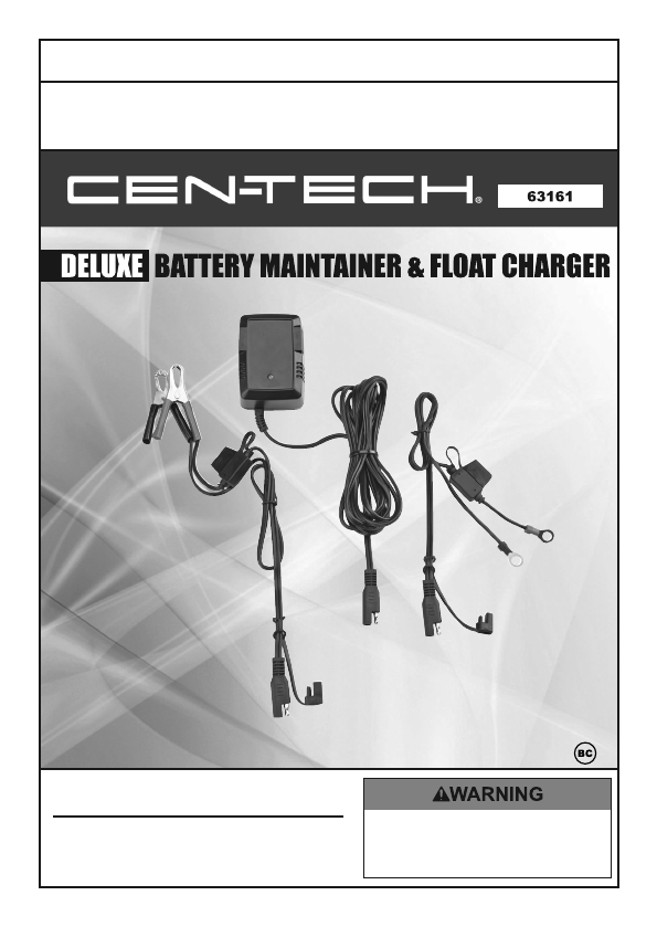 User Manual: Manual for the 63161 12 Volt Deluxe Battery Maintainer and Float Charger 12 Volt Deluxe Battery Maintainer and Float Charger