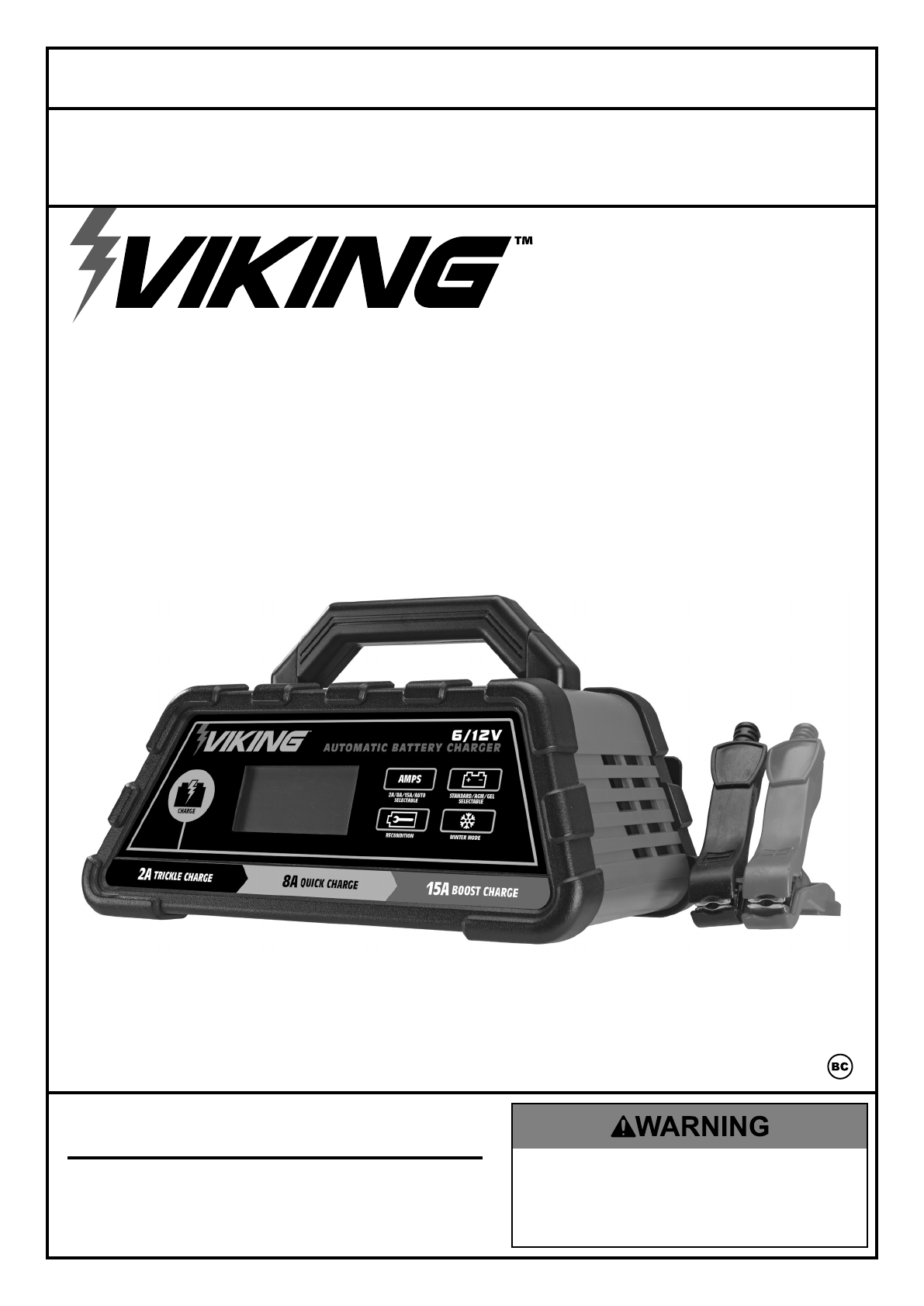 Manual For The 63299 2/8/15 Amp 6/12V Fully Automatic Microprocessor Controlled Battery Charger