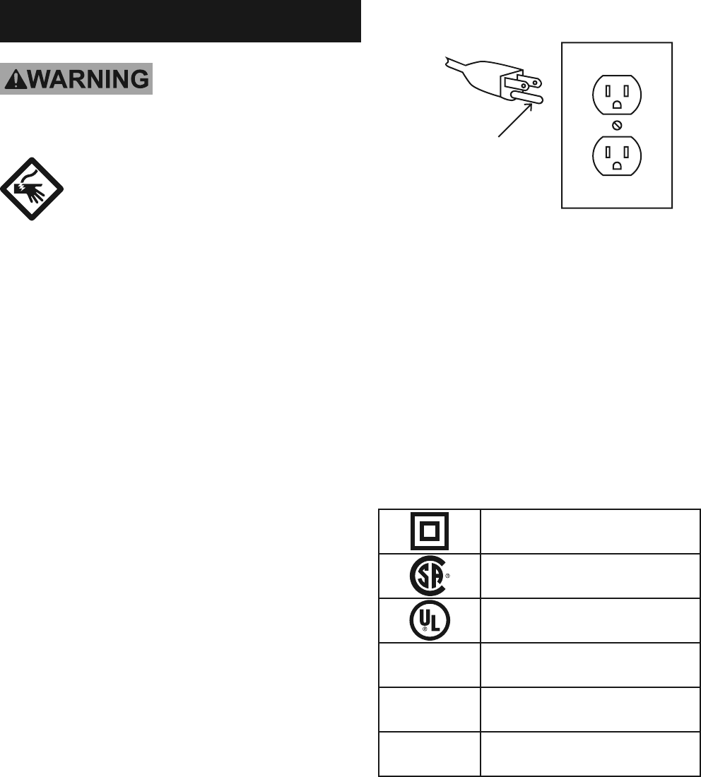 110-120 VAC GROUNDED COMPRESSORS: COMPRESSORS WITH THREE PRONG PLUGS .........................6