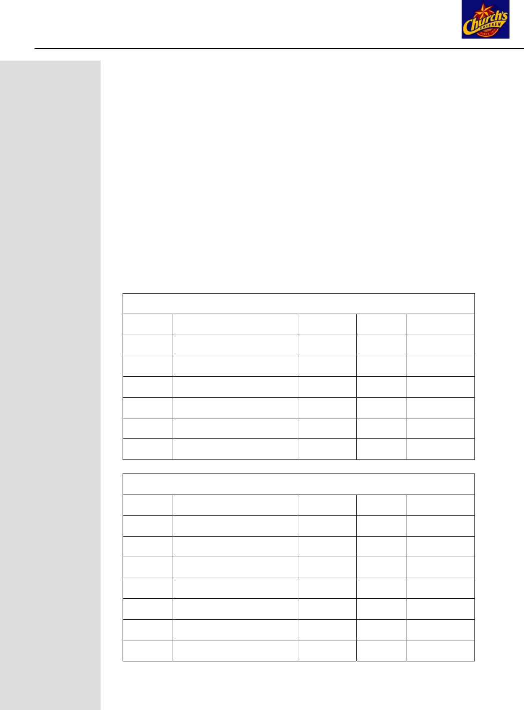 (PROGRAMMED FOR CHURCH’S CHICKEN)