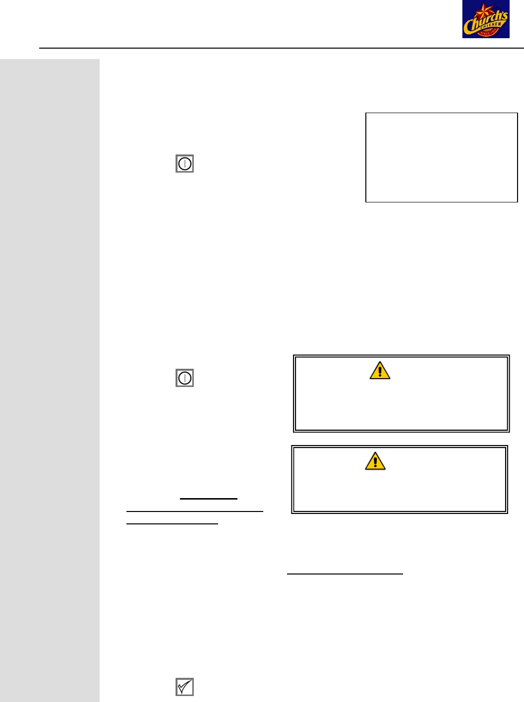 Operating the Fryer after Setting for Church’s Chicken Operation