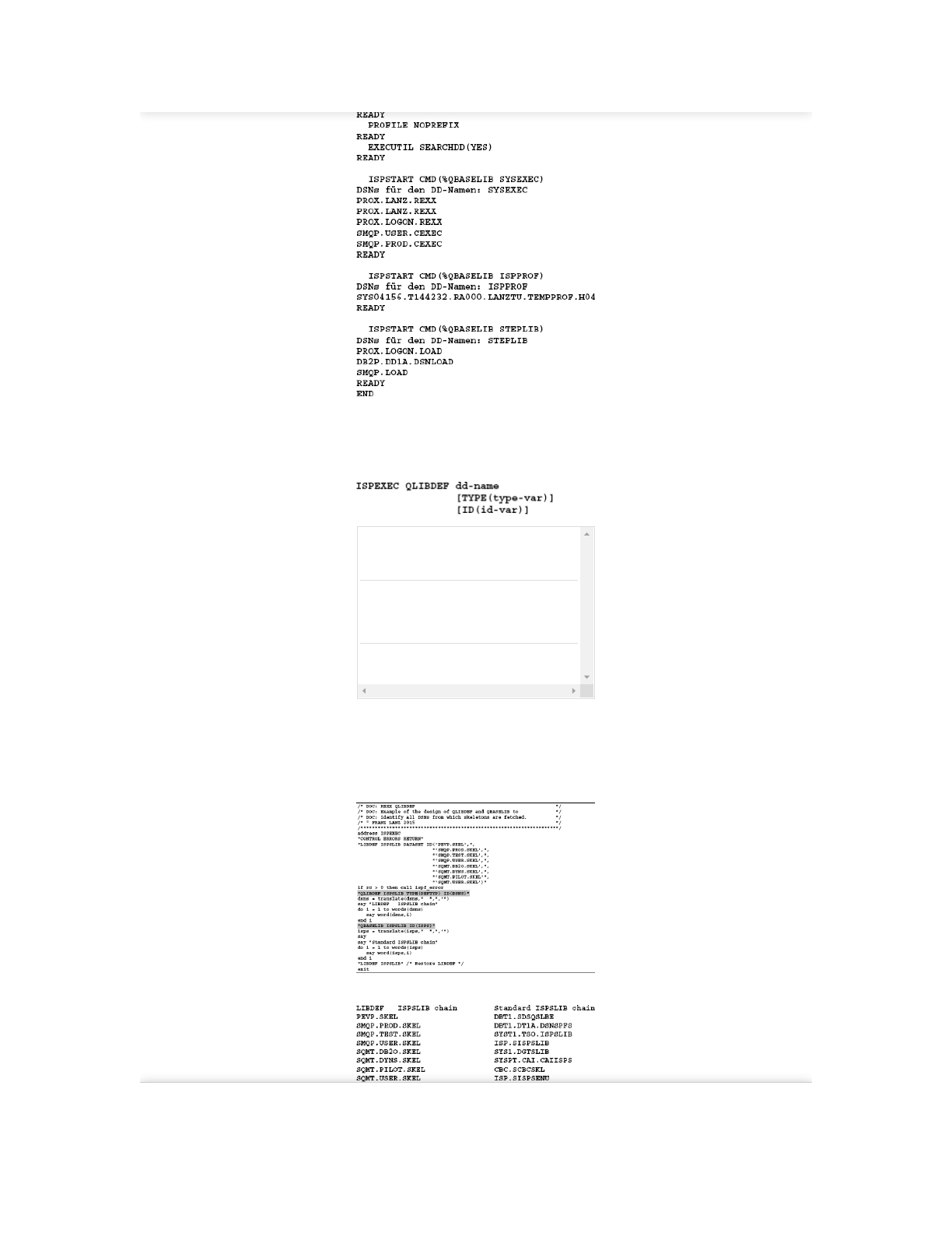 QLIBDEF. Then the function QBASELIB is executed to print the ISPSLIB chain