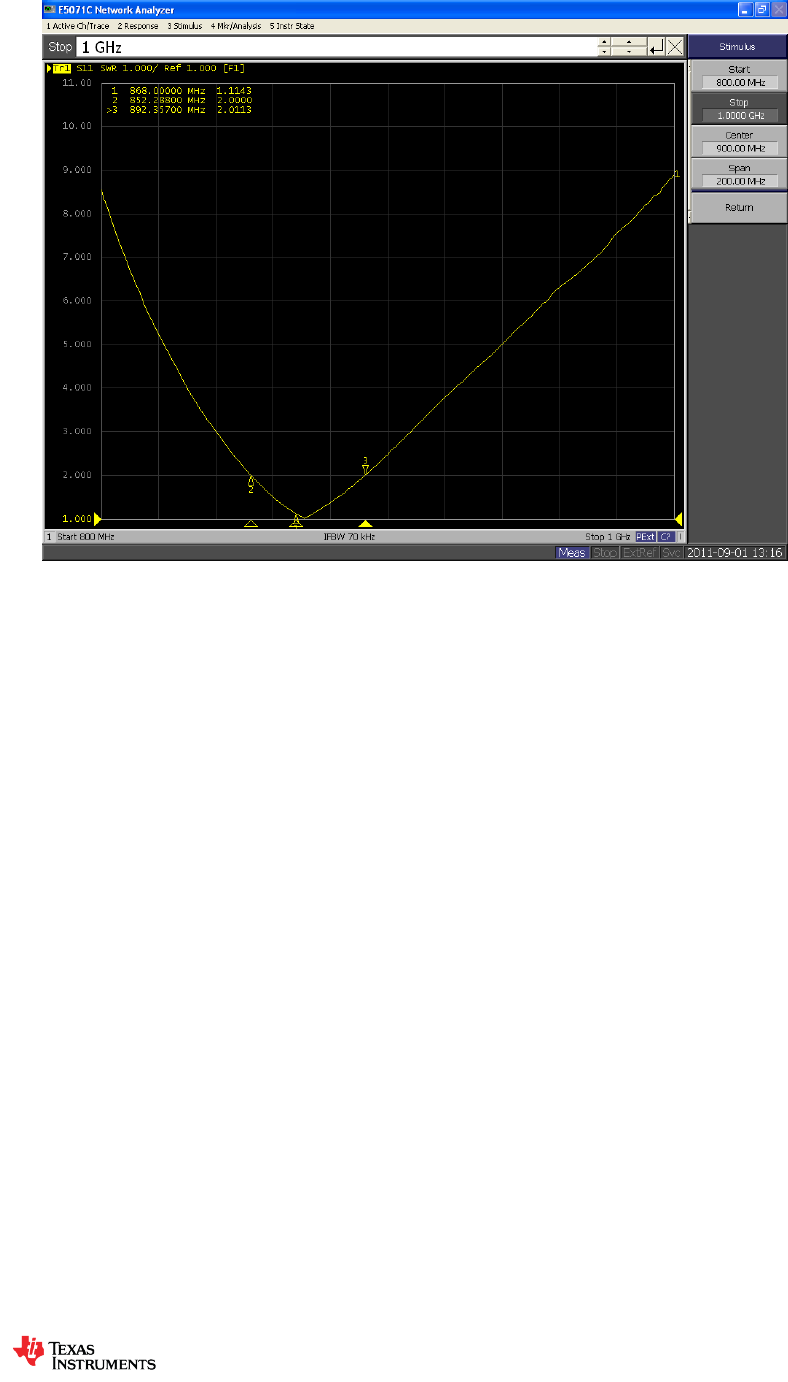 from 50 ohms (868 MHz: 10-j88; VSWR
