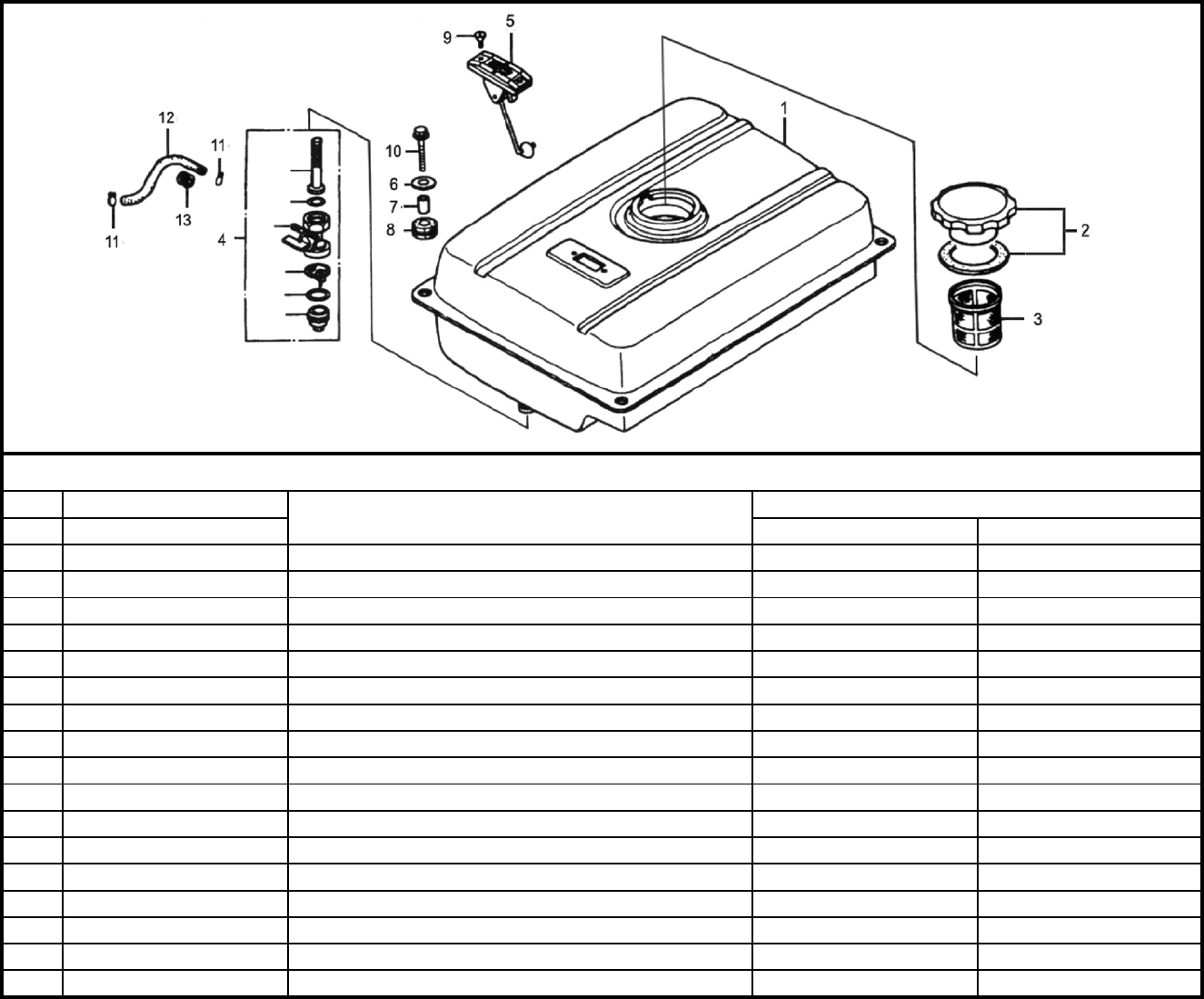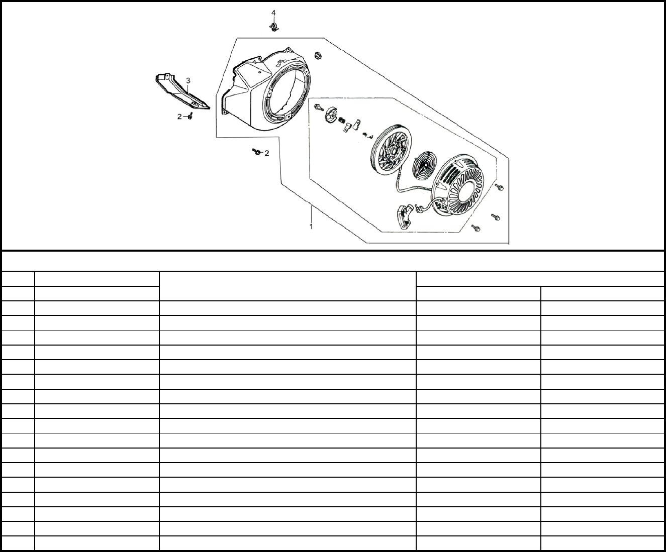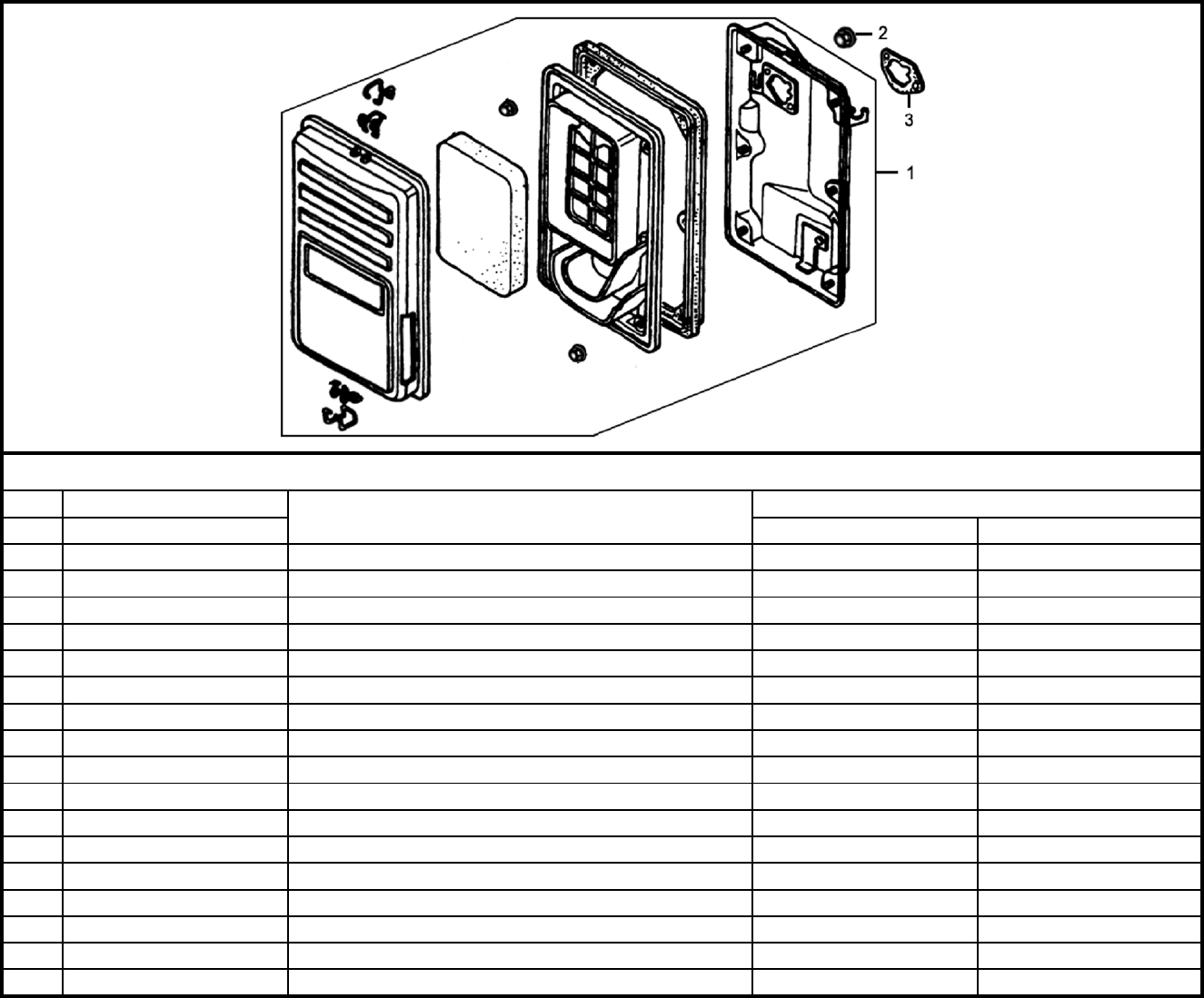 The number given in the “Reqd. No.” column indicates the quantity of parts used in the section described in that block.