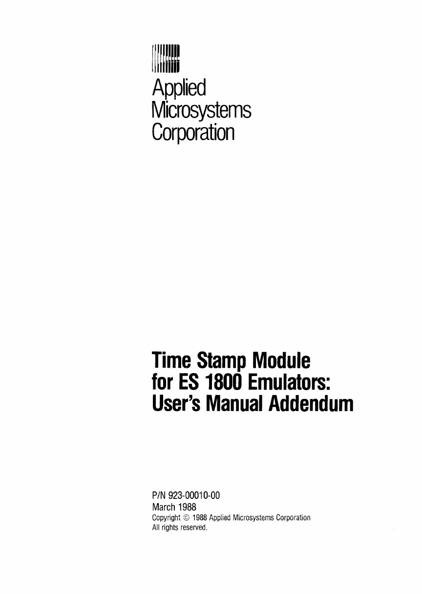 User Manual: 923-00010-00_Time_Stamp_Module_Mar88