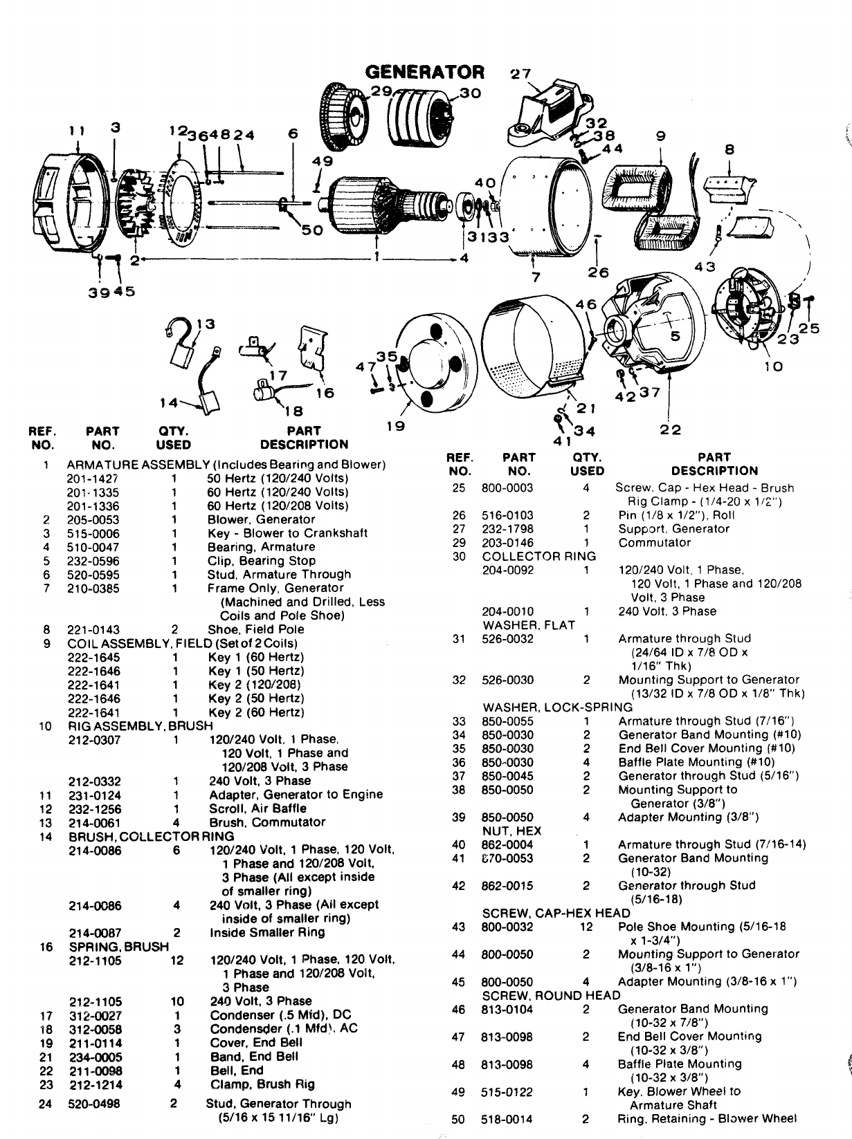 Rwwa024 927 0223 Onan 10KW CCK CCKB (spec A E) Genset Parts Manual (05 1989)