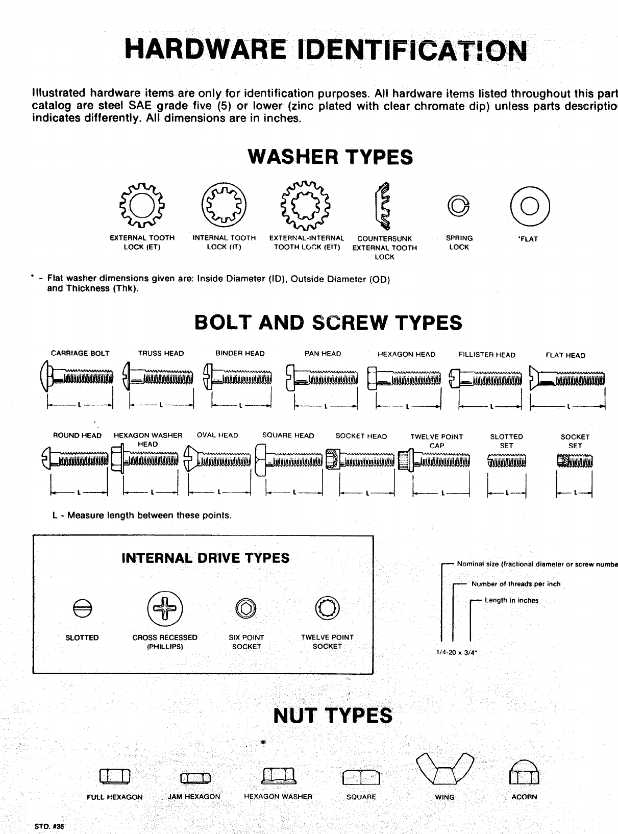 catalog are steel SAE grade five (5) or lower (zinc plated with clear chromate dip) unless parts description