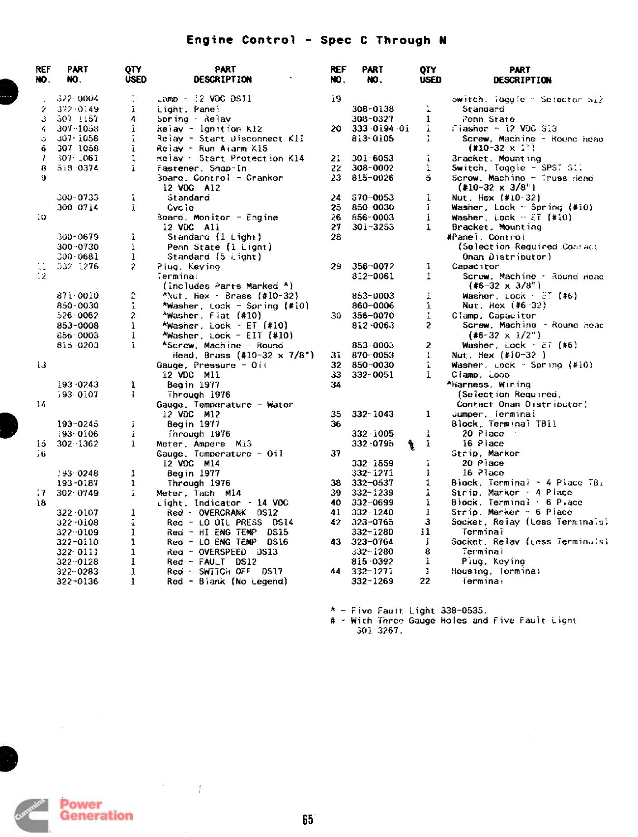 User Manual: 928-0220 Onan EK EM (asst'd specs) Parts manual (09-1993)