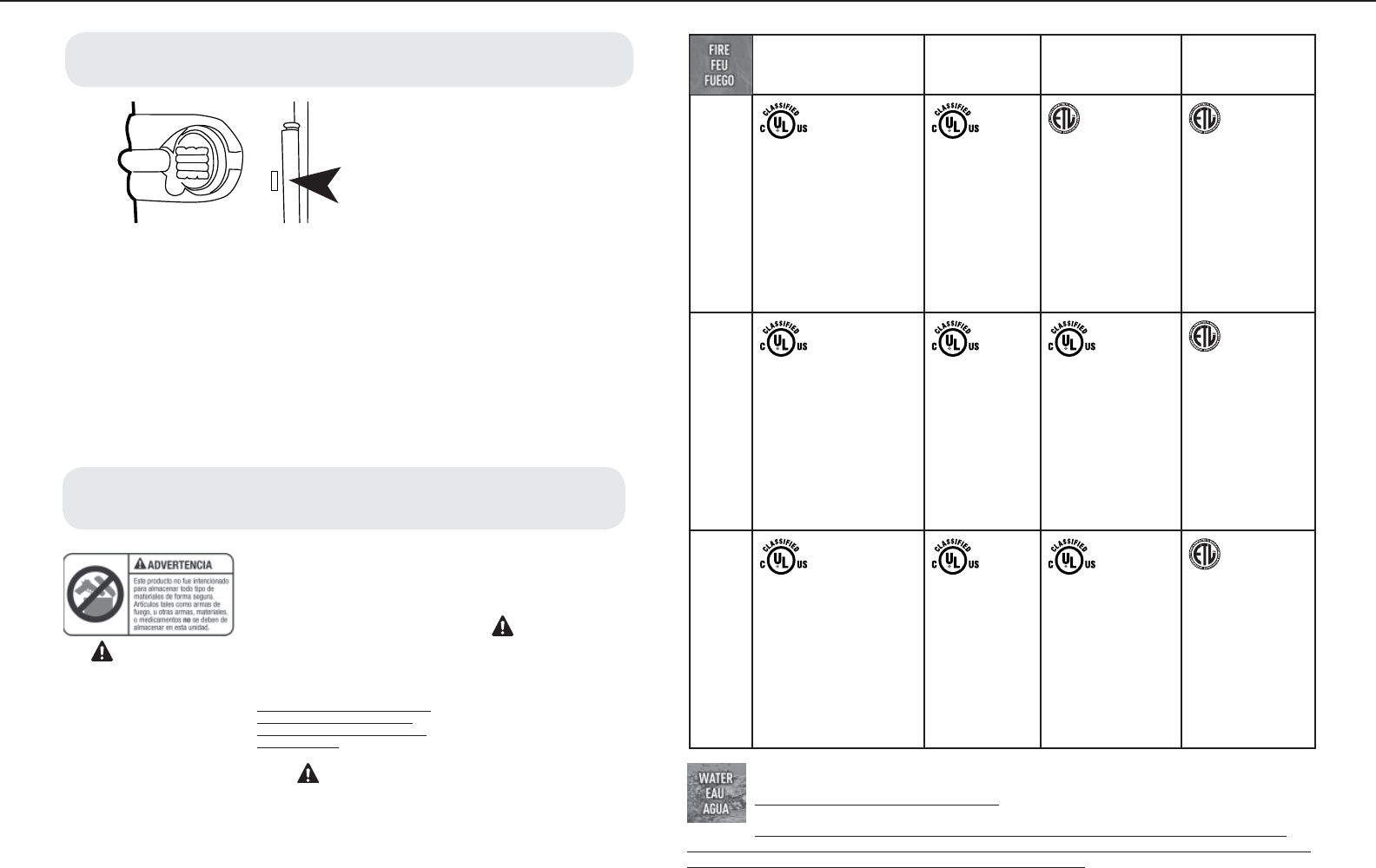 Protección de resistencia al agua verifi cada por ETL (si la caja fuerte está dotada de la