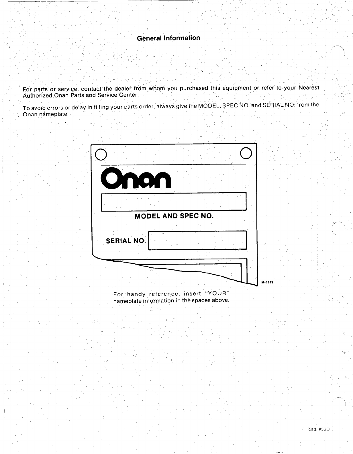 To avoid errors or delay in”filling your parts order, always give the MODEL, ~PEC” NO. and SERIAL NO. -from the