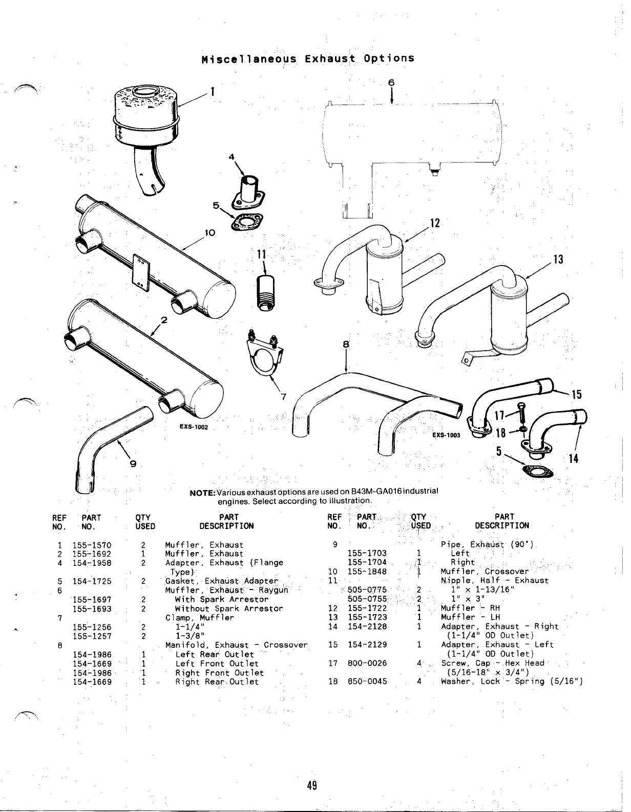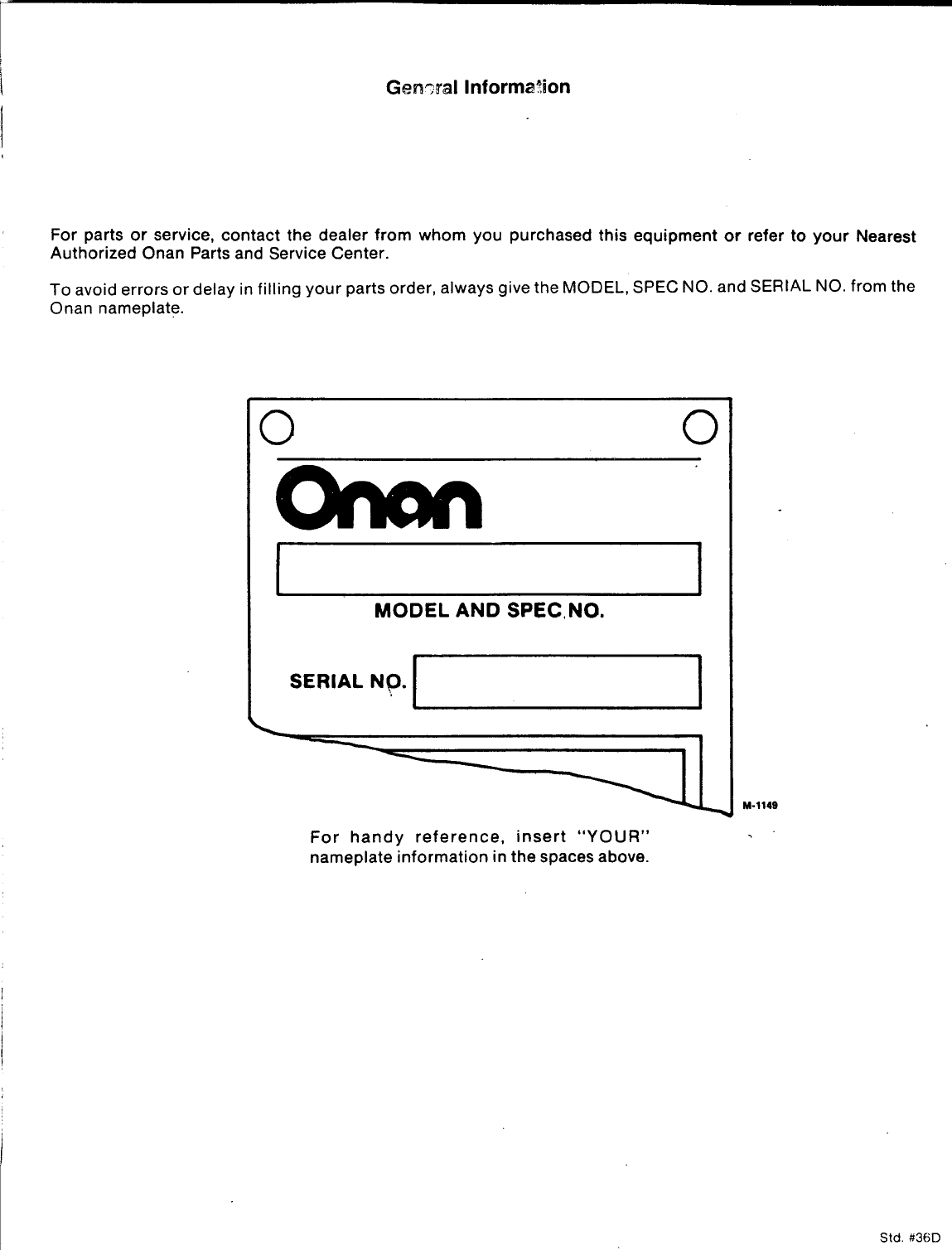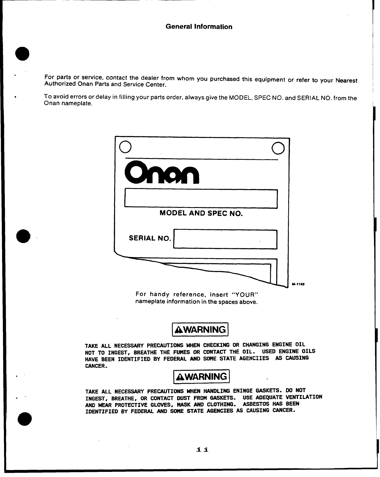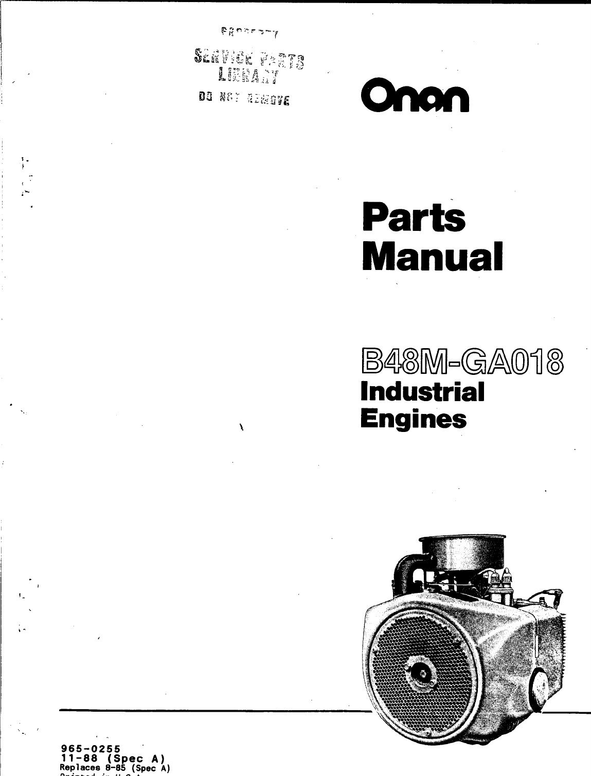 User Manual: 965-0254 Onan B43M GA016 (Spec A-C) Industrial Engine Parts manual (11-1988)