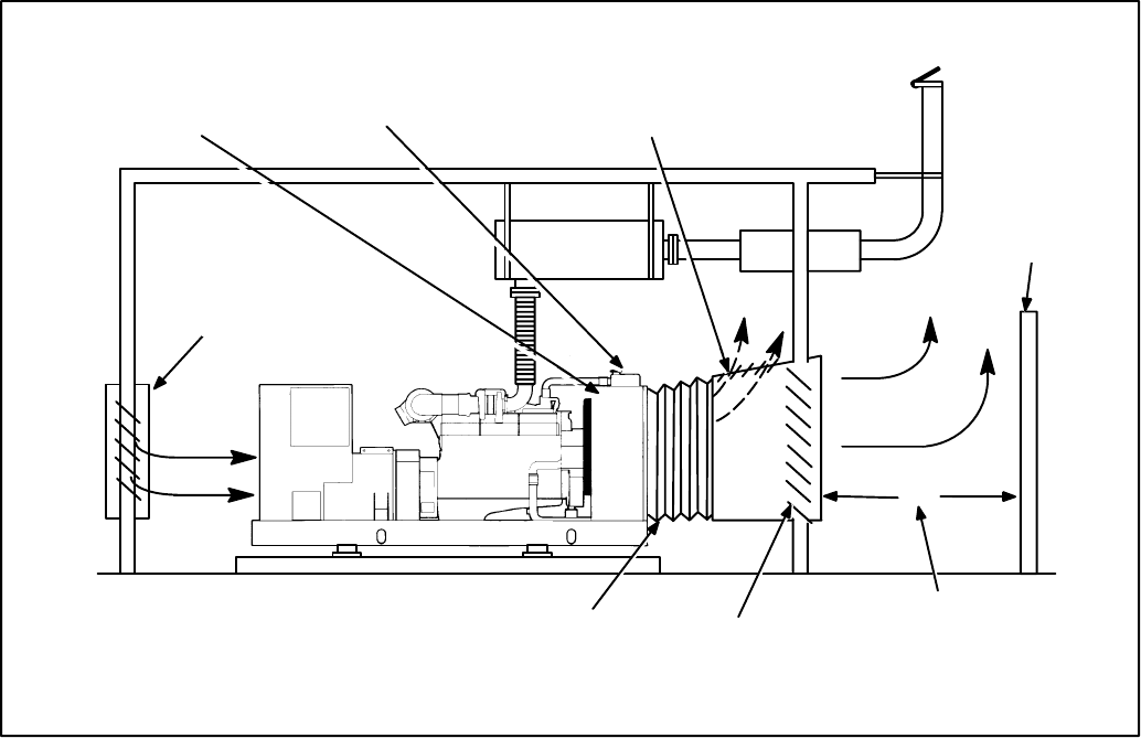 jGenerator set air inlet is faced into direction of strongest, prevailing winds.