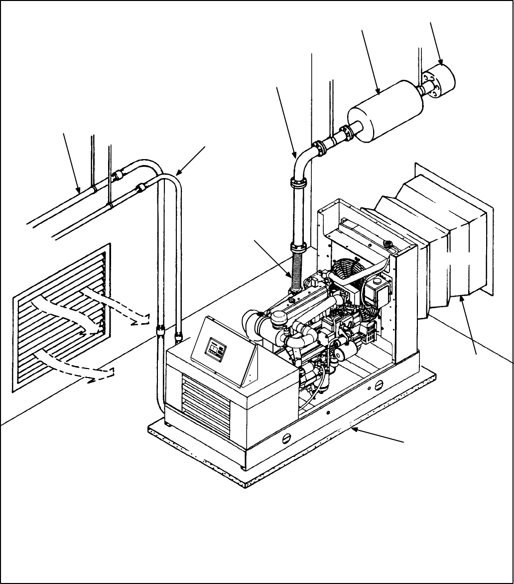jFloor, roof or earth on which the generator set rests is strong enough and will not allow shifting or move-