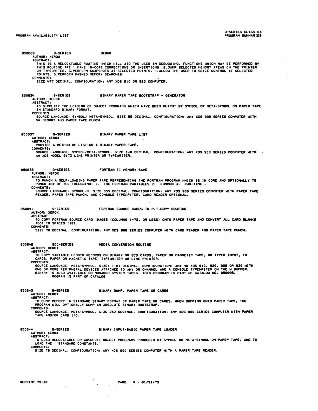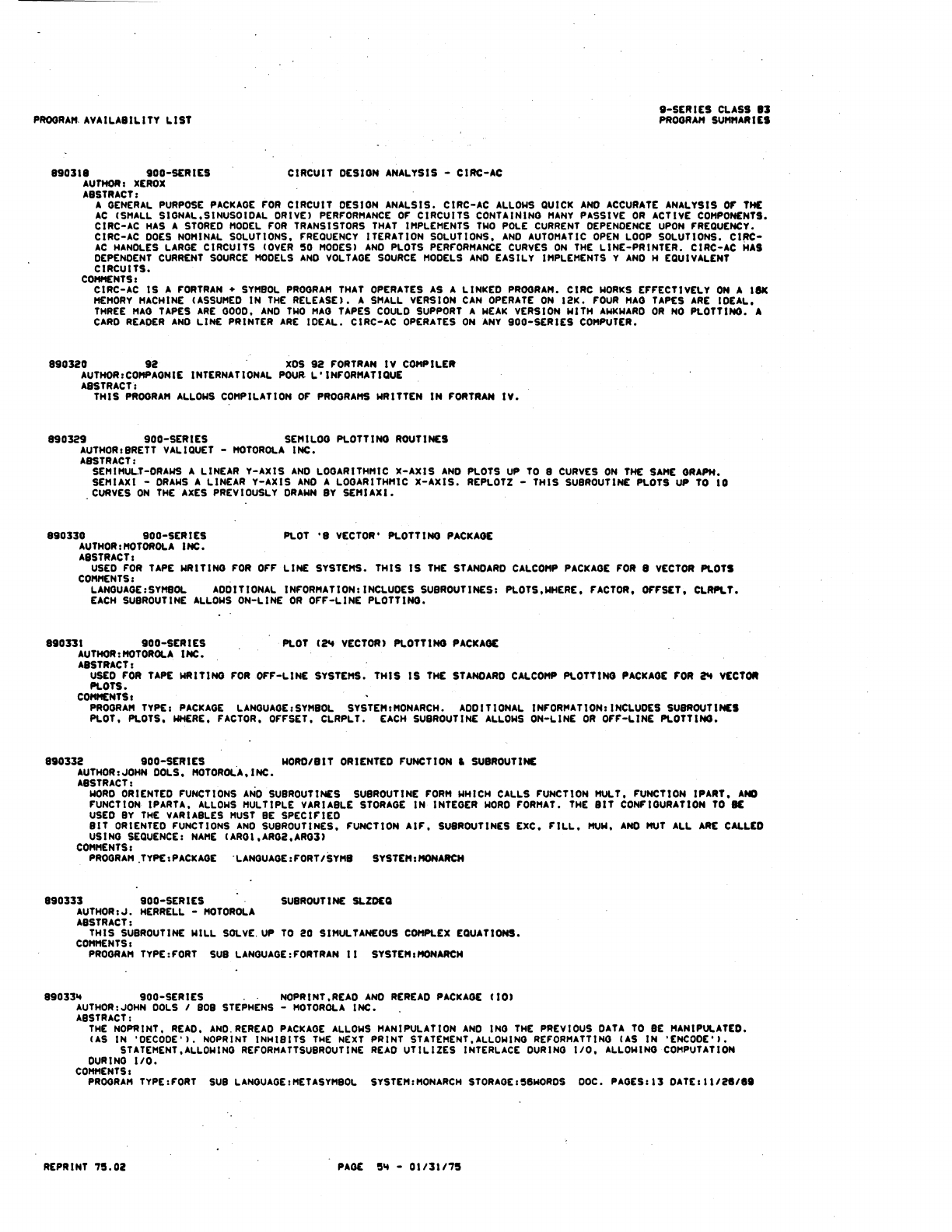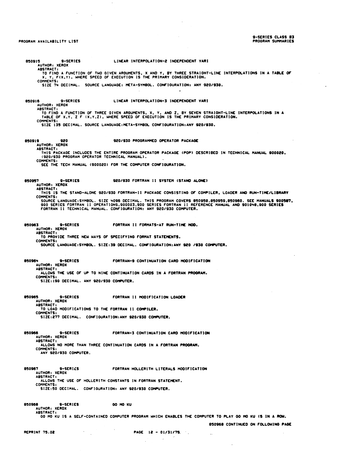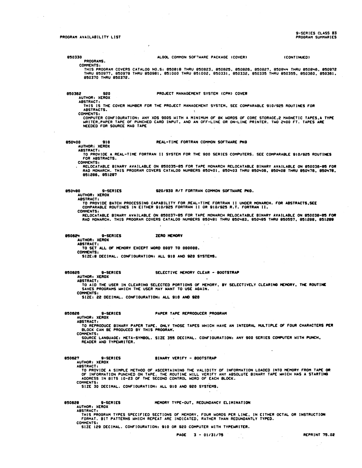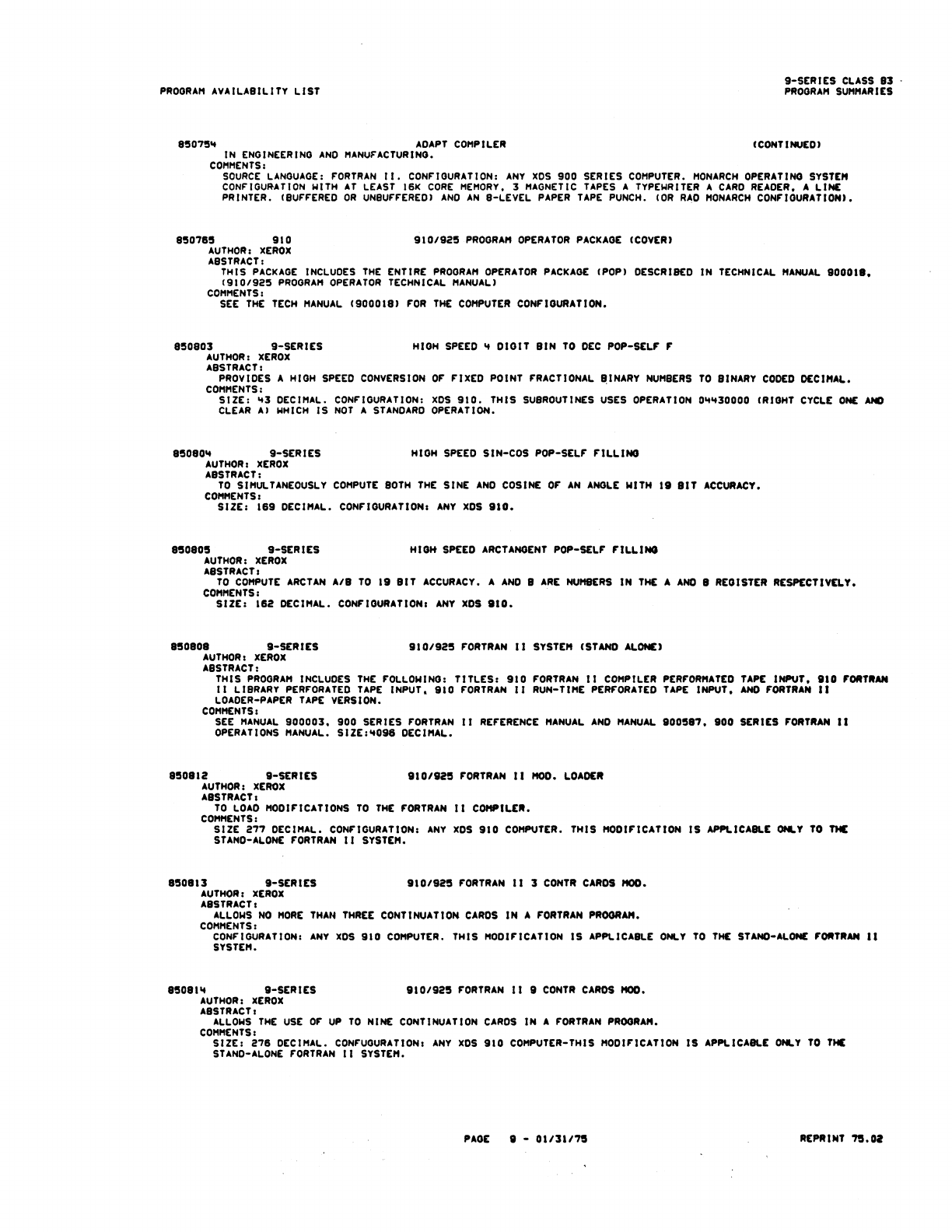 9xx_Program Libr_Feb75 9xx Program Libr Feb75