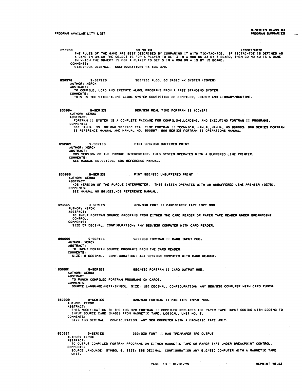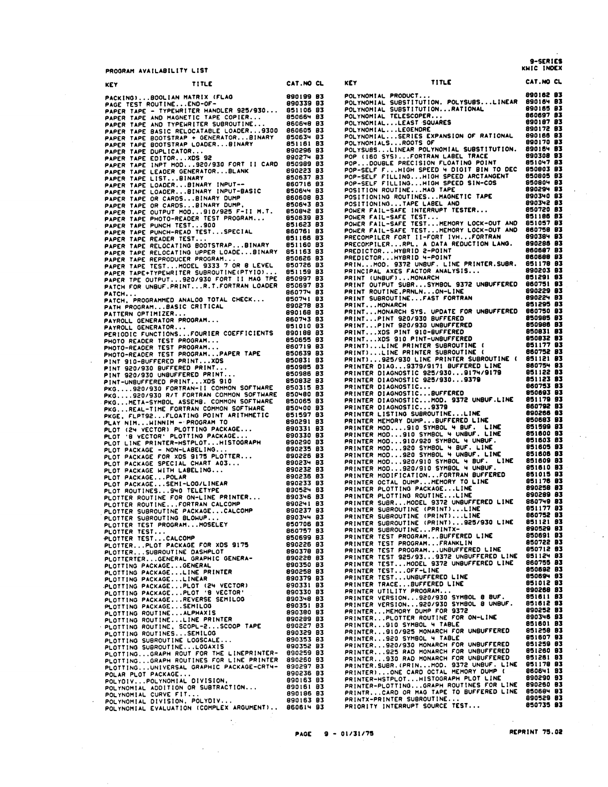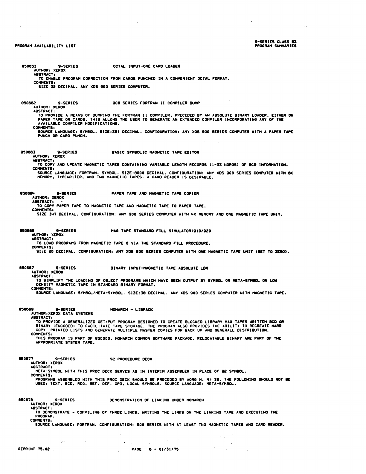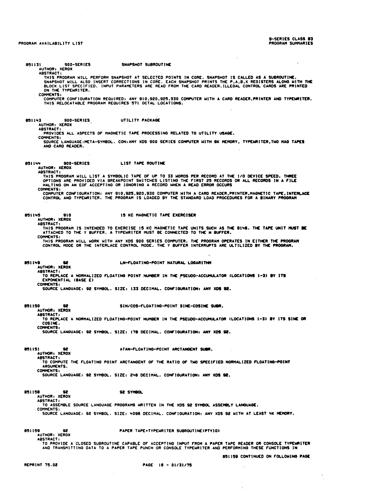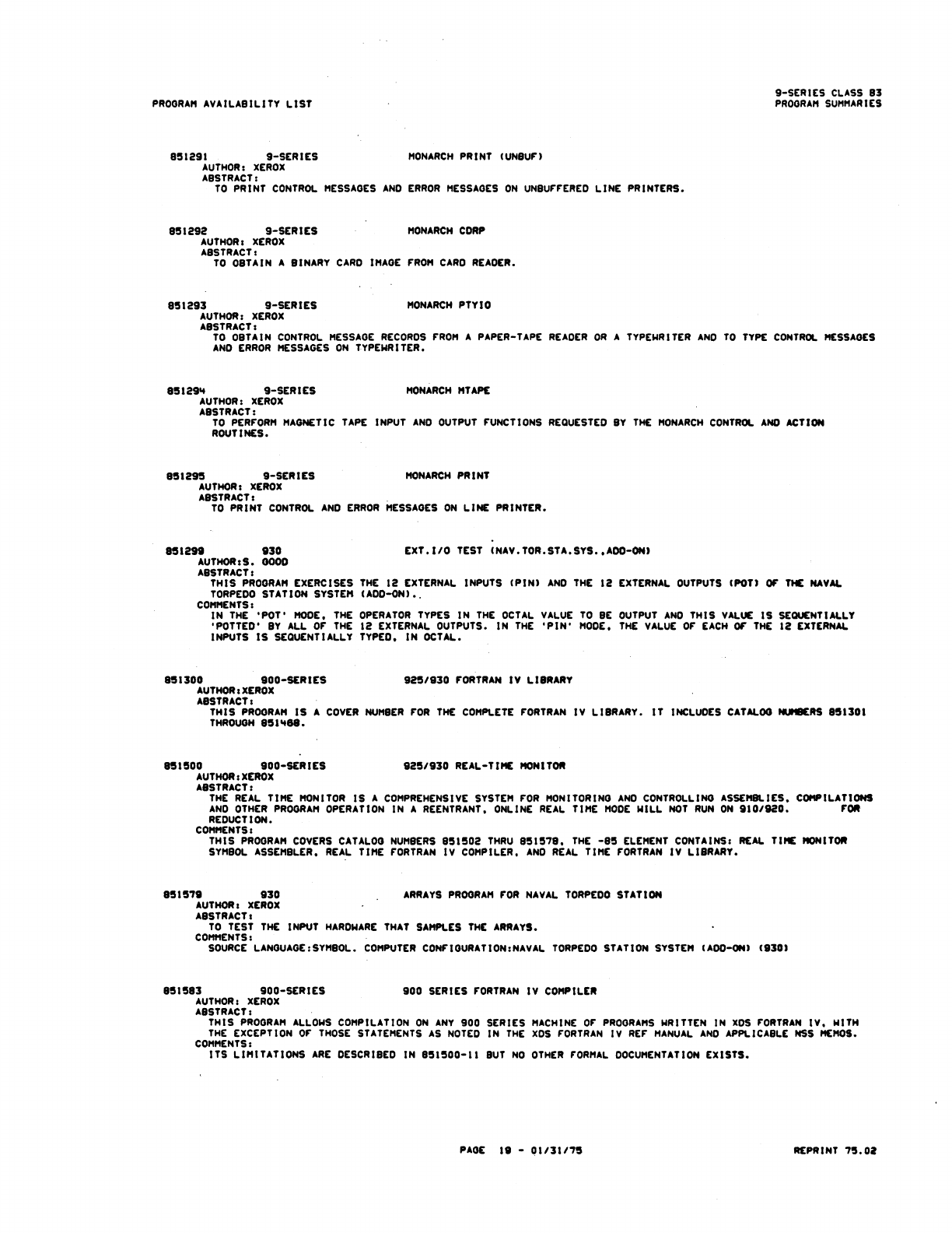 9xx_Program Libr_Feb75 9xx Program Libr Feb75