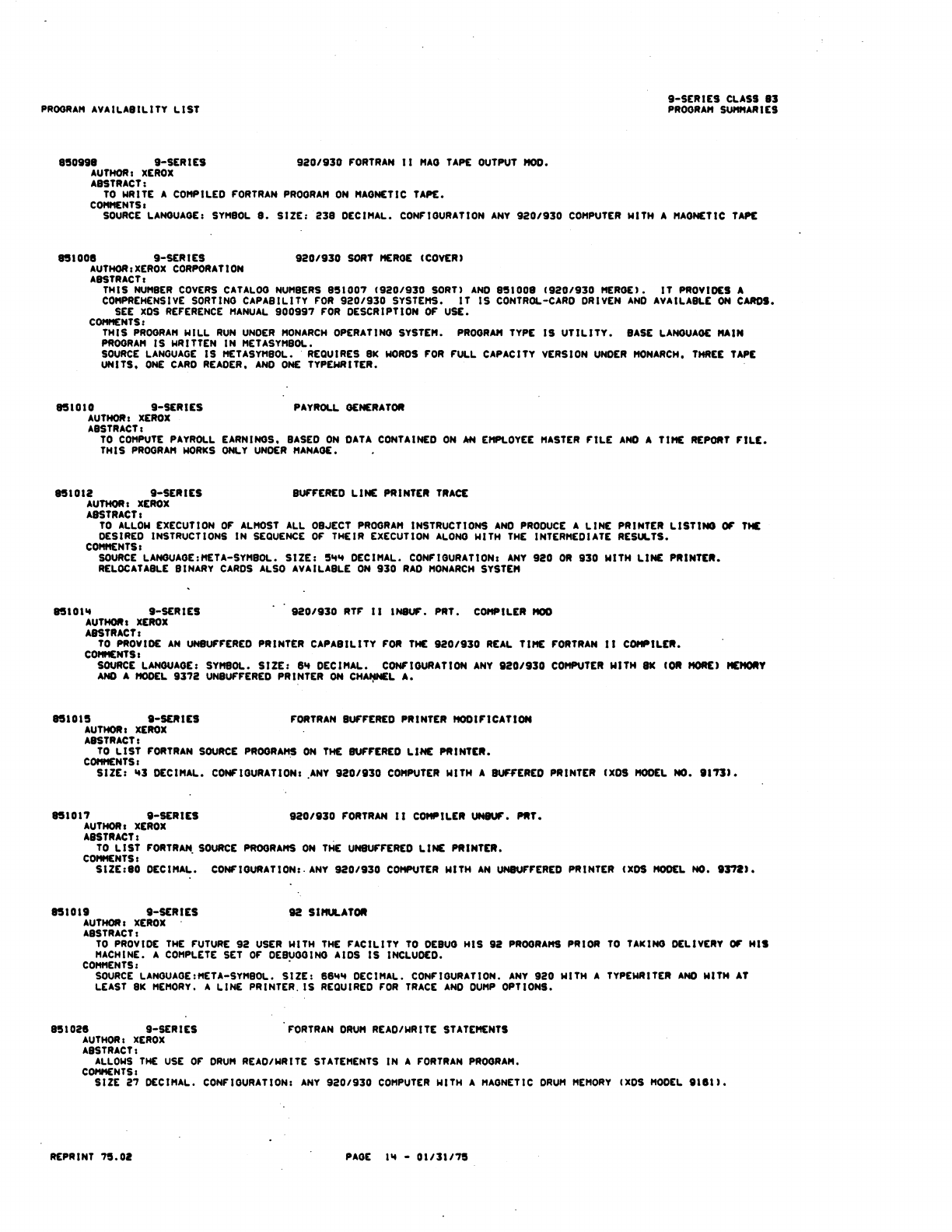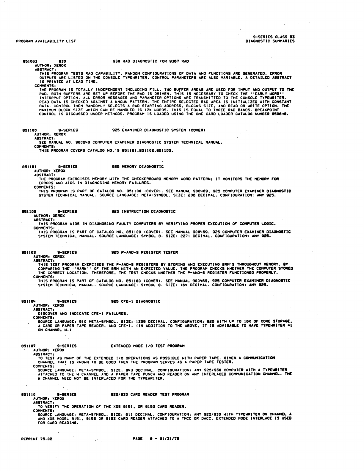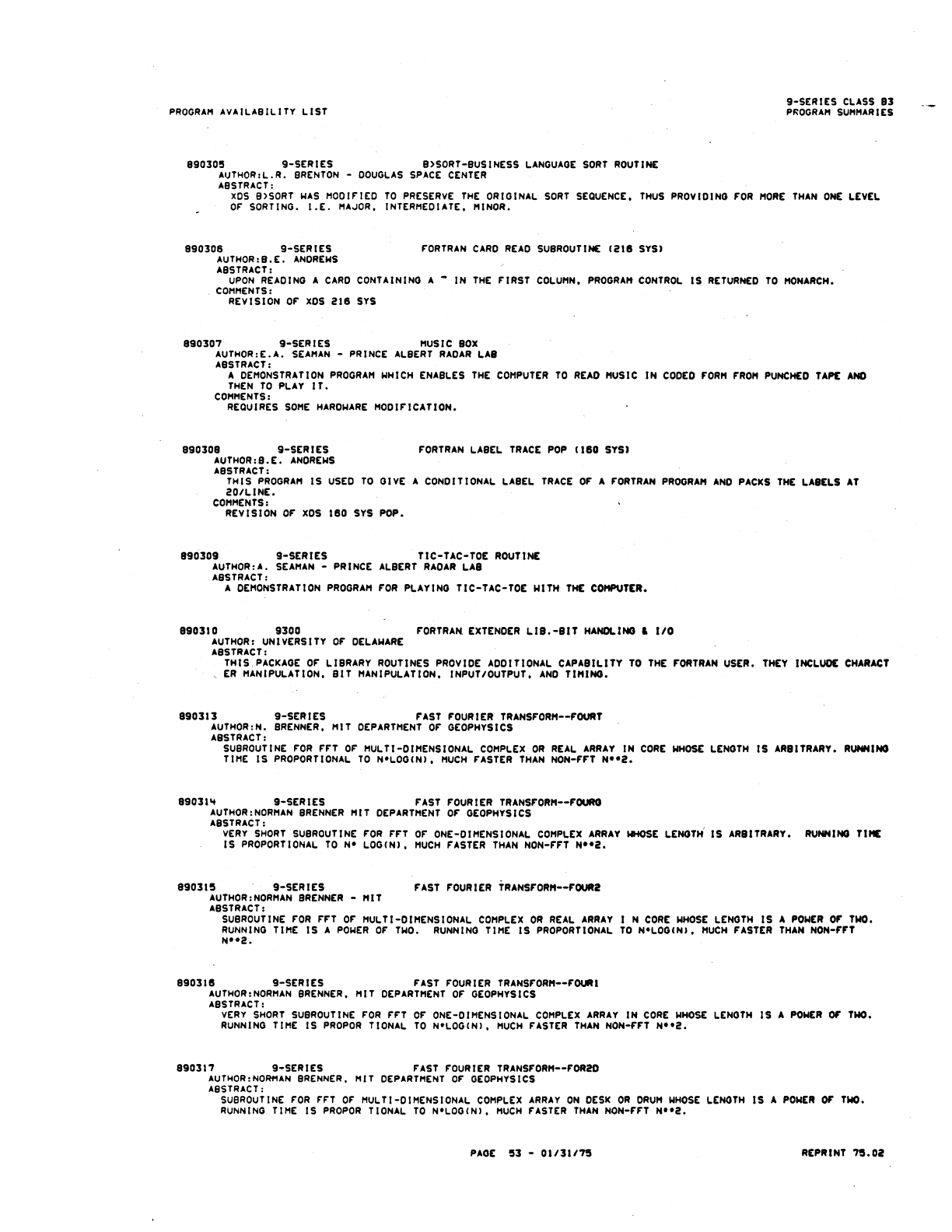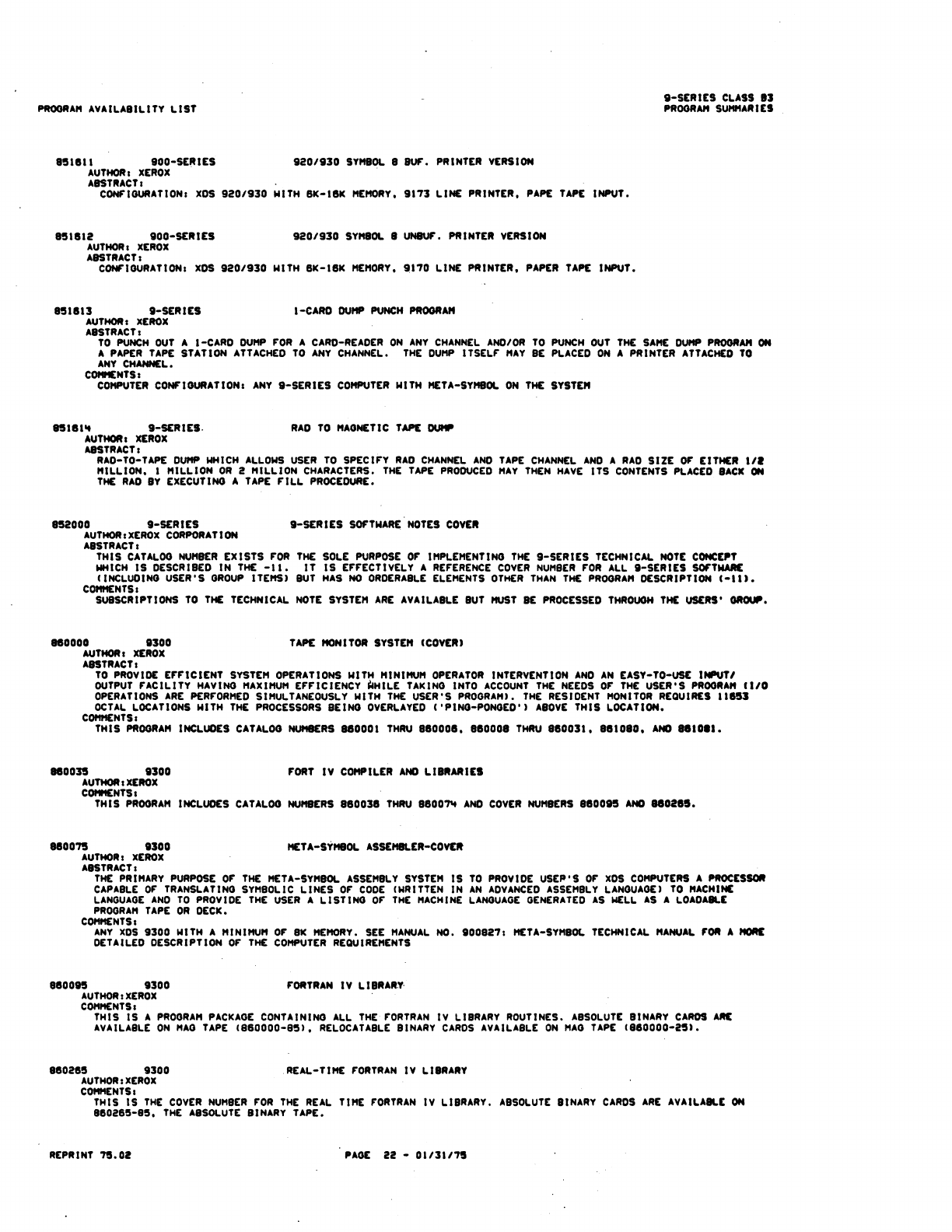 9xx_Program Libr_Feb75 9xx Program Libr Feb75