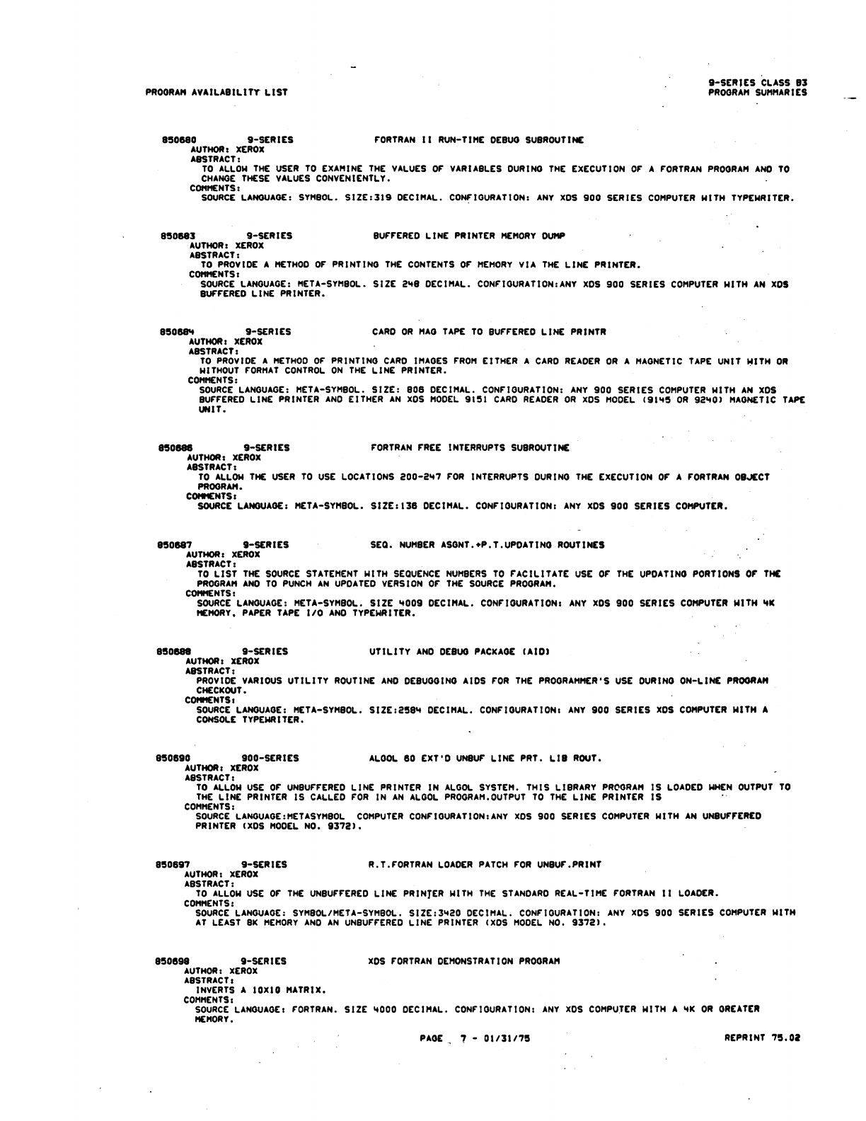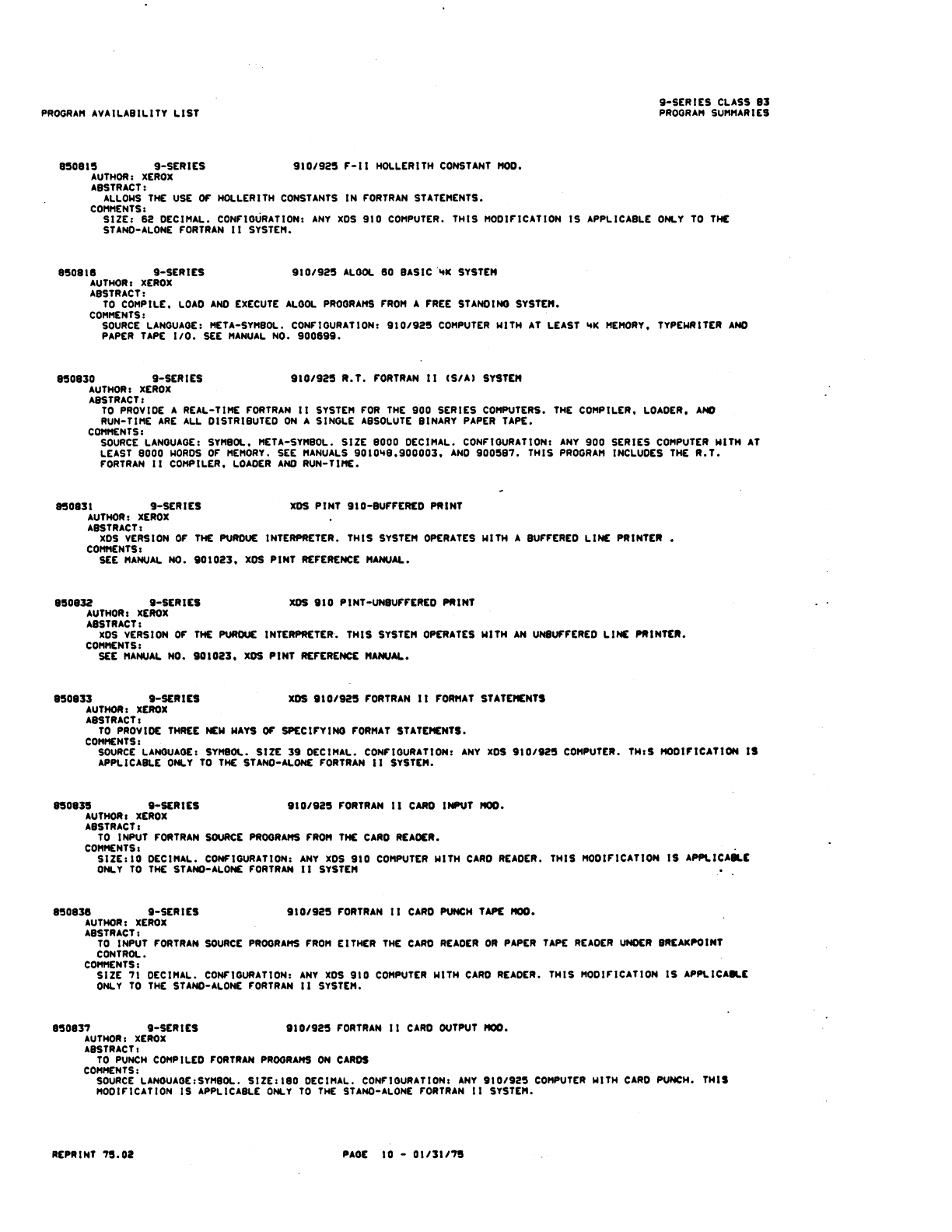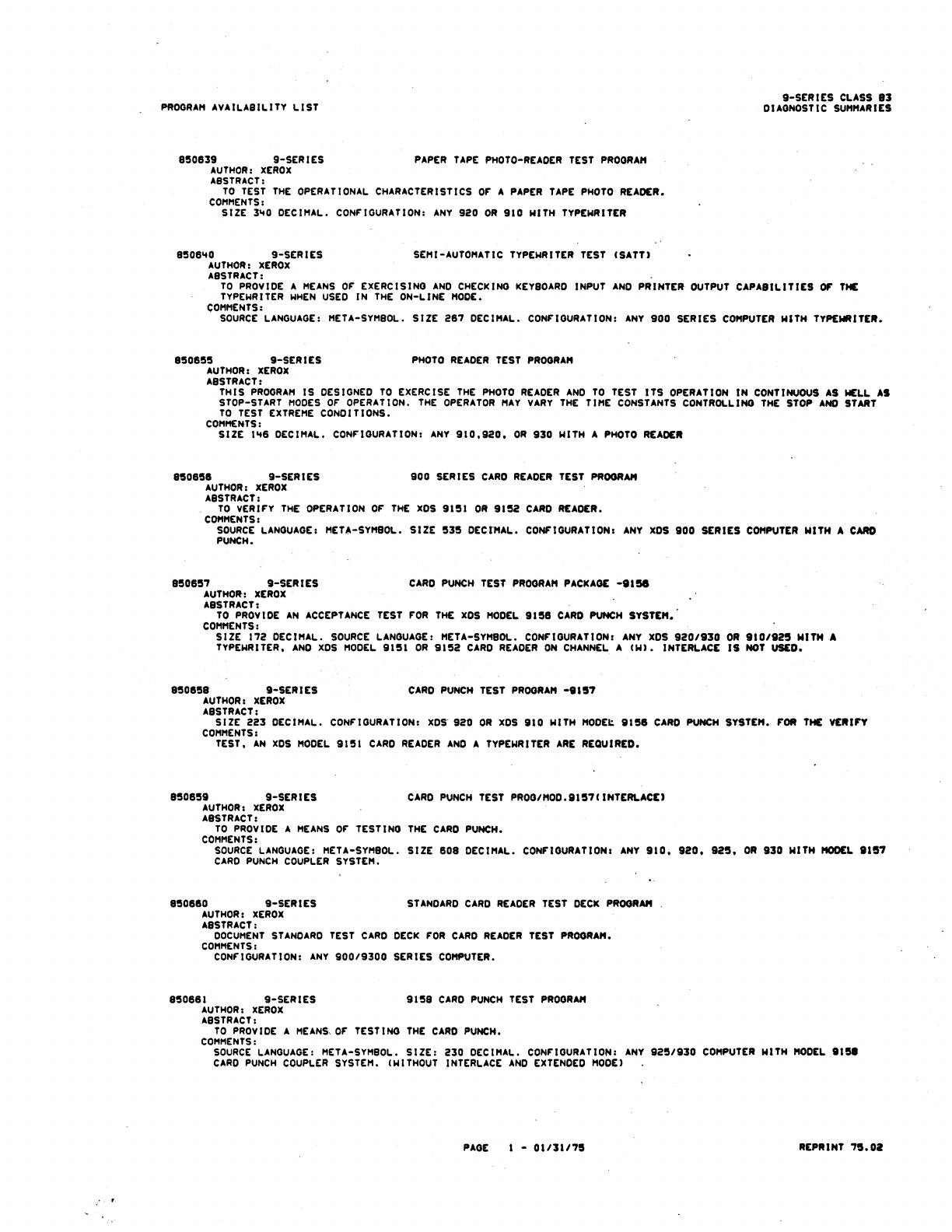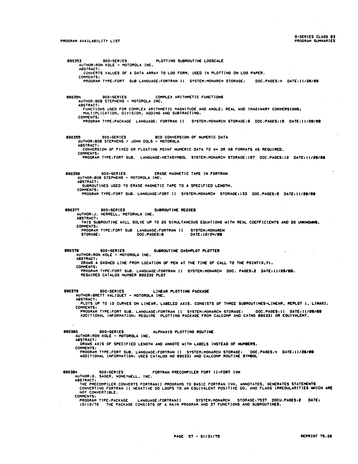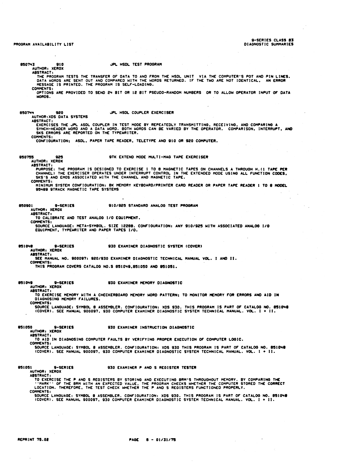 9xx_Program Libr_Feb75 9xx Program Libr Feb75