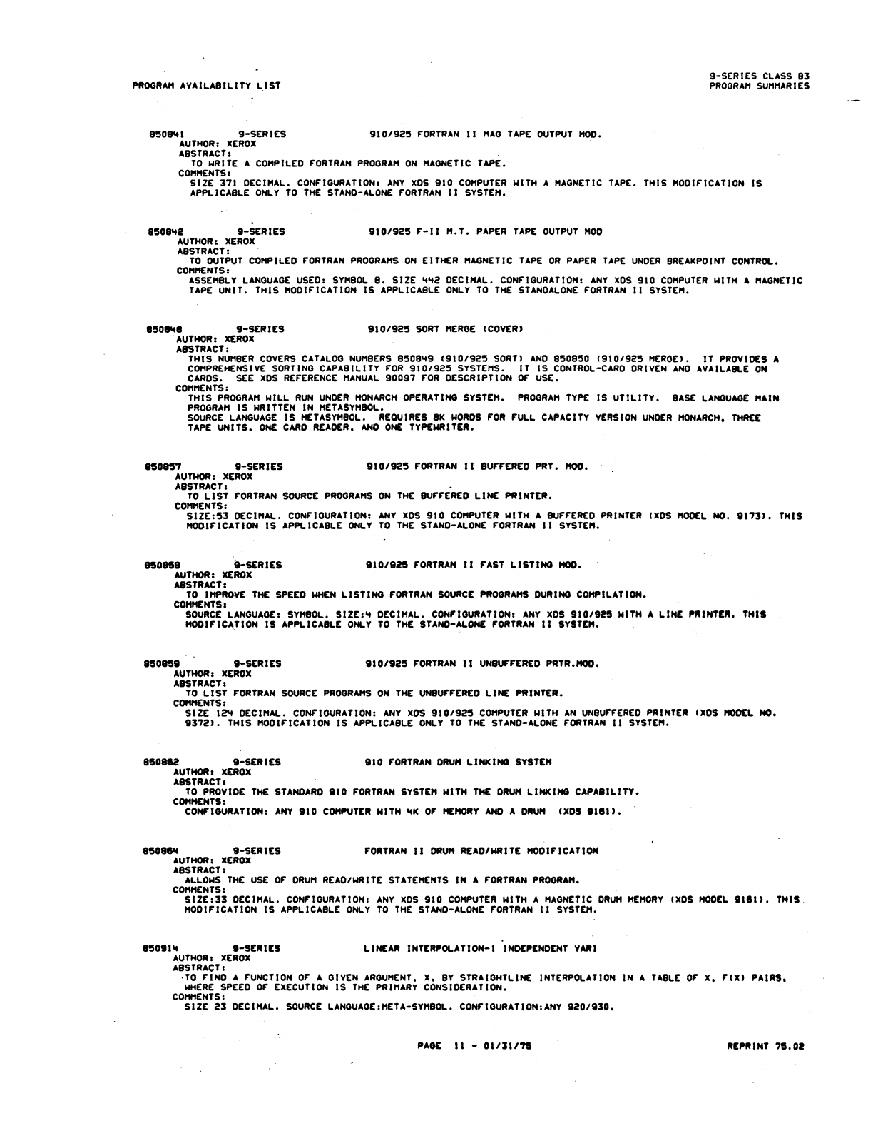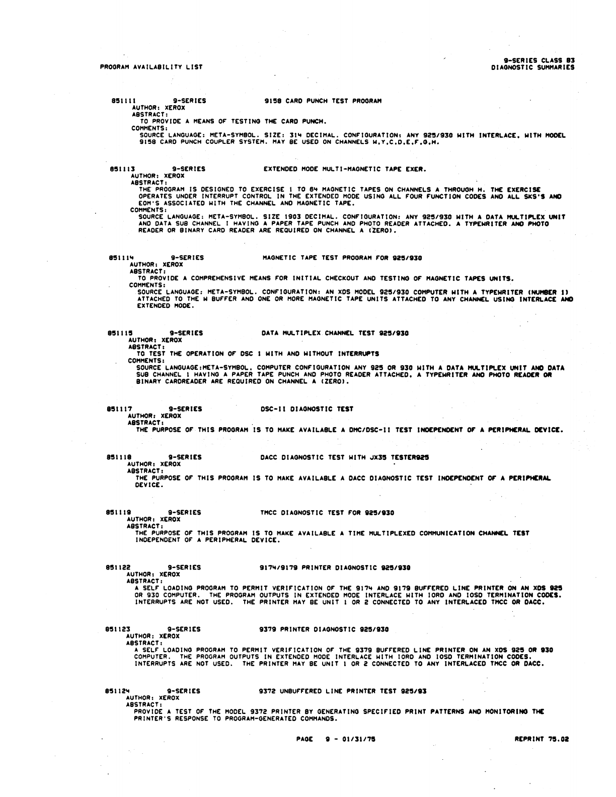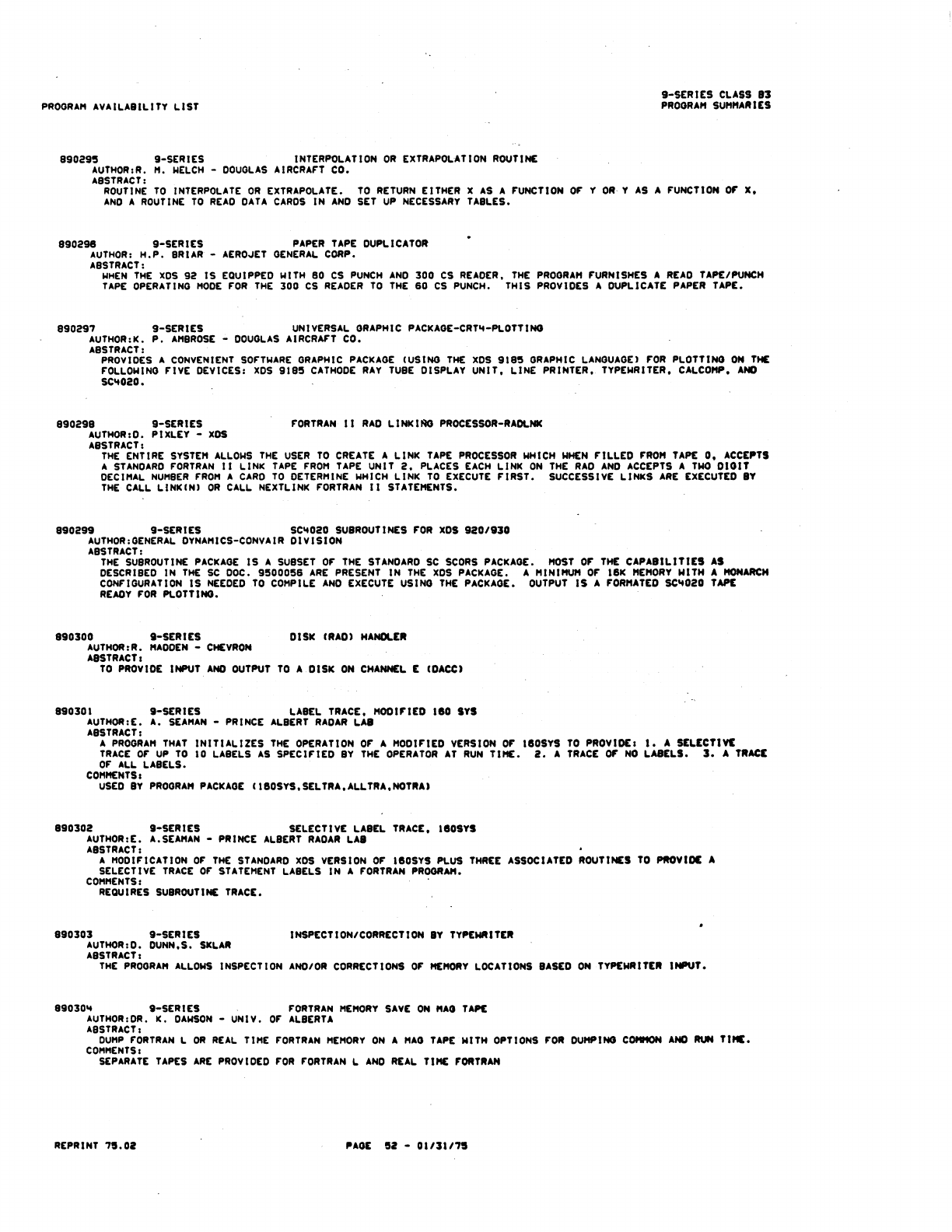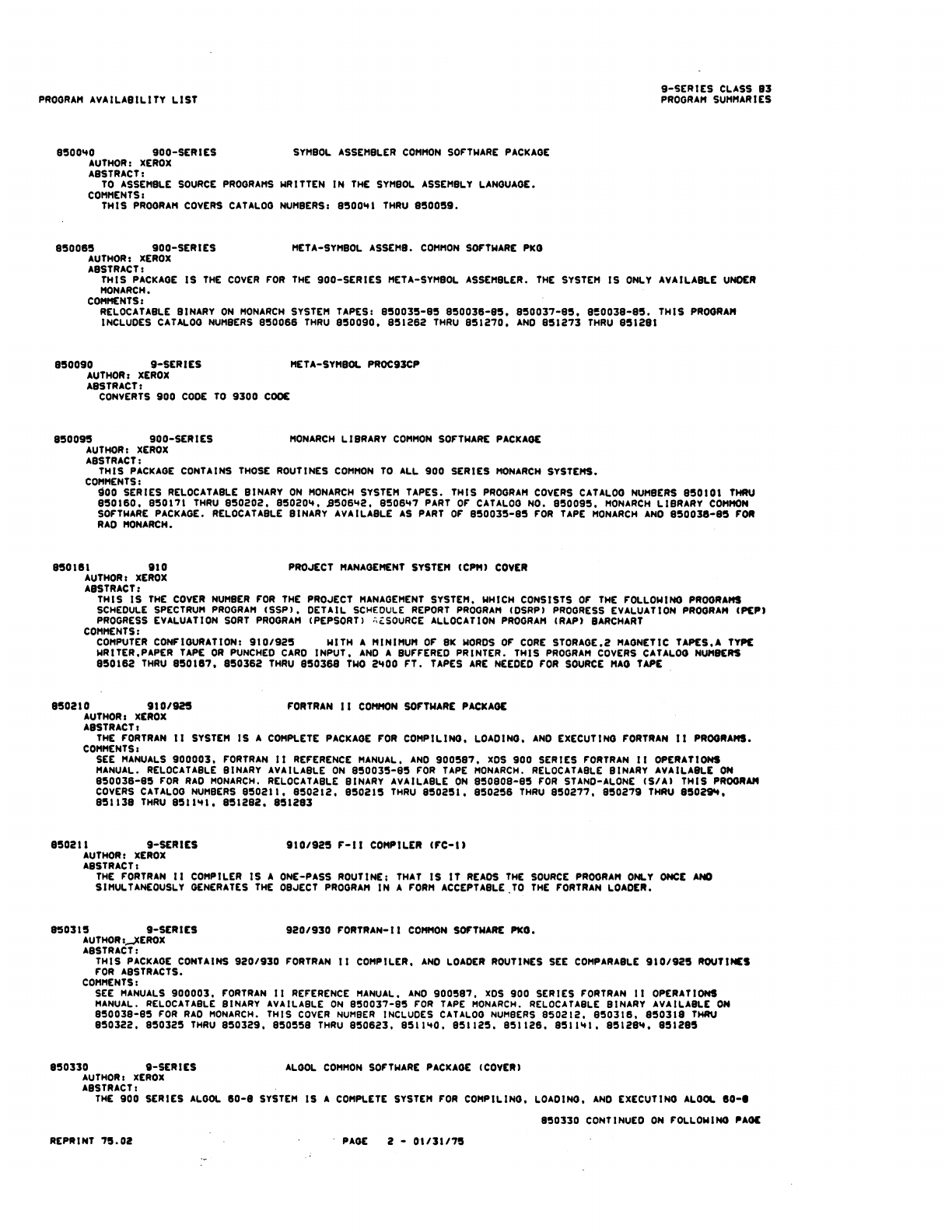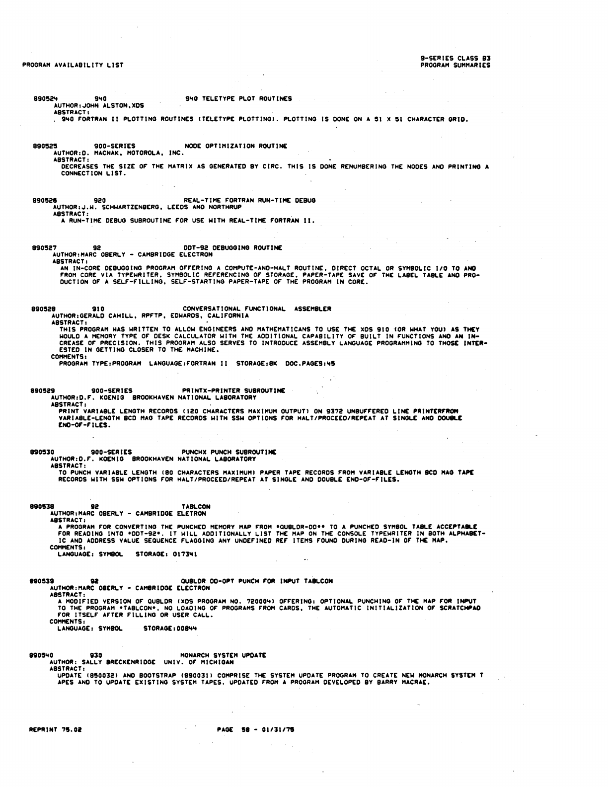 9xx_Program Libr_Feb75 9xx Program Libr Feb75