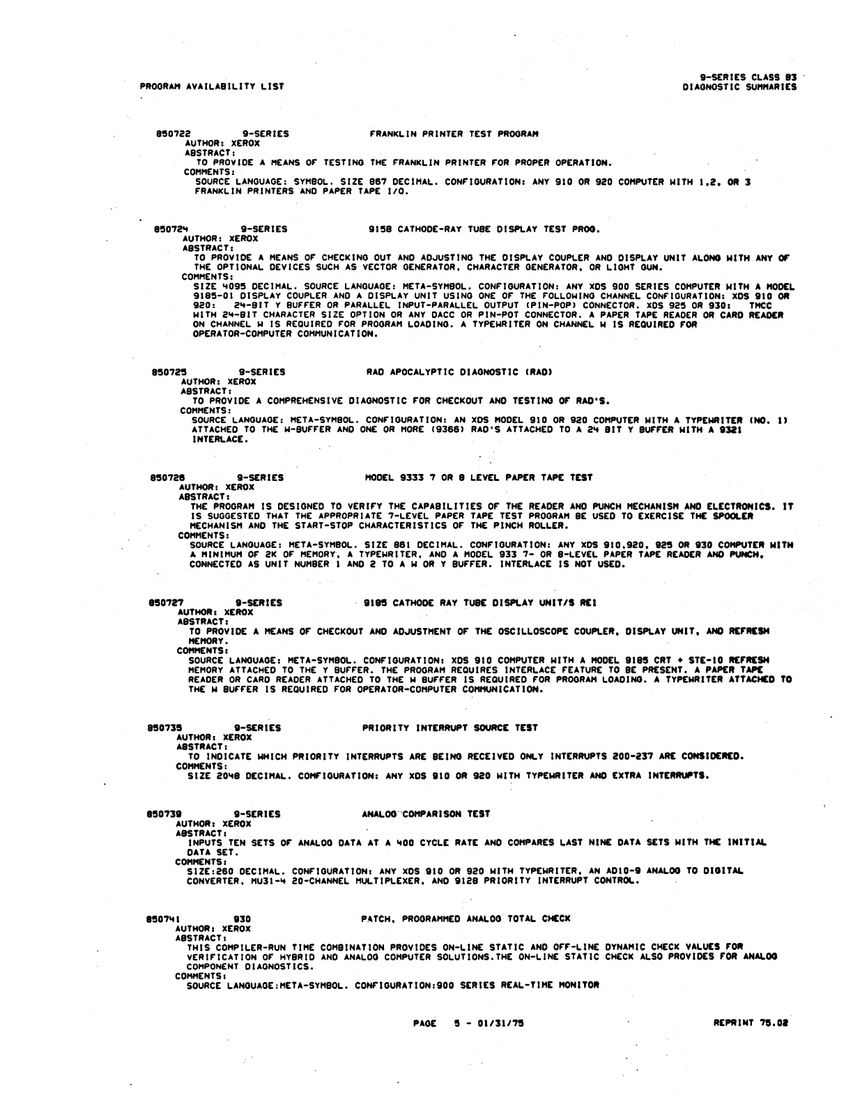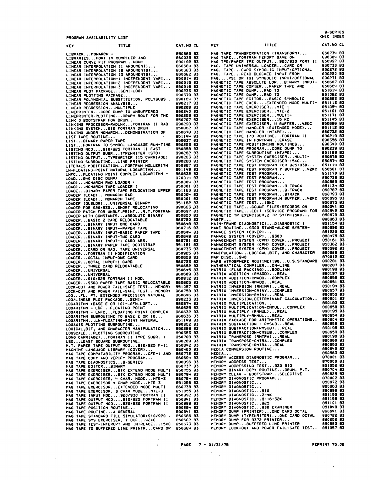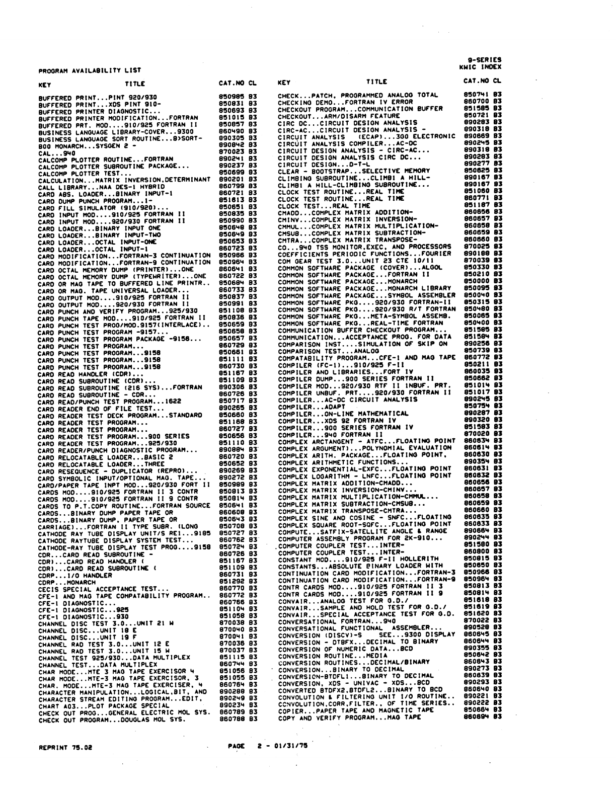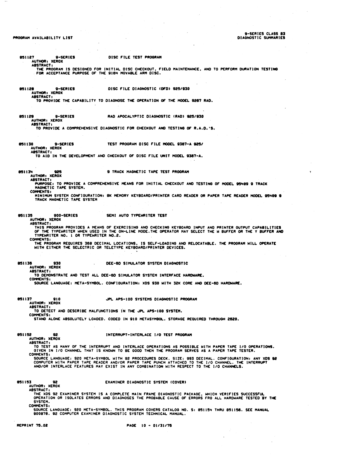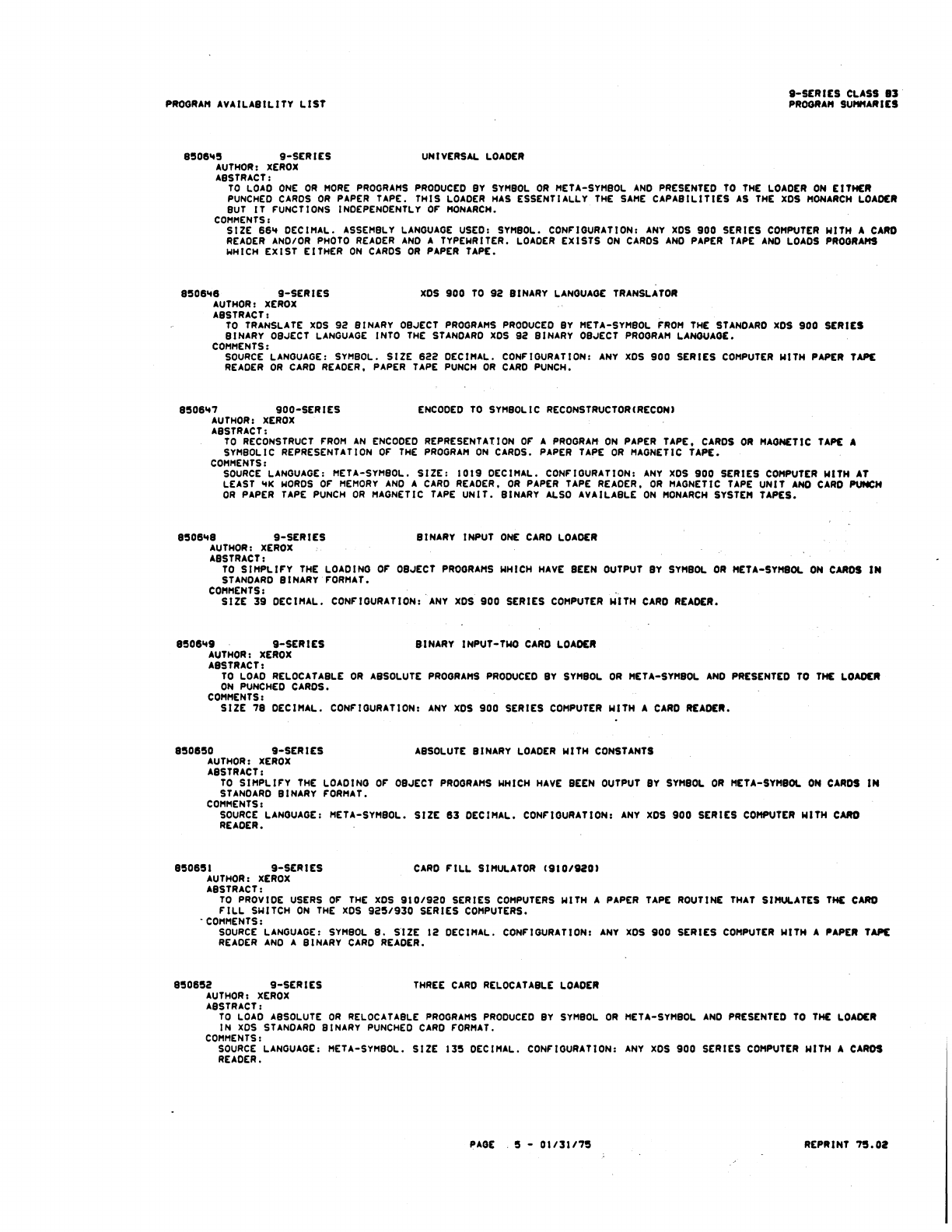 9xx_Program Libr_Feb75 9xx Program Libr Feb75
