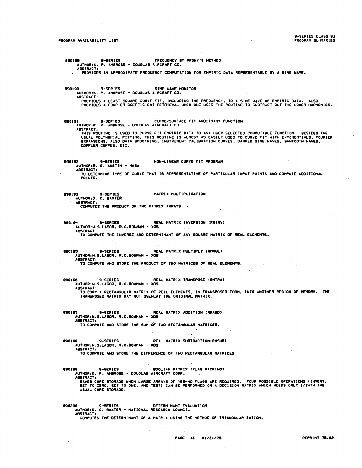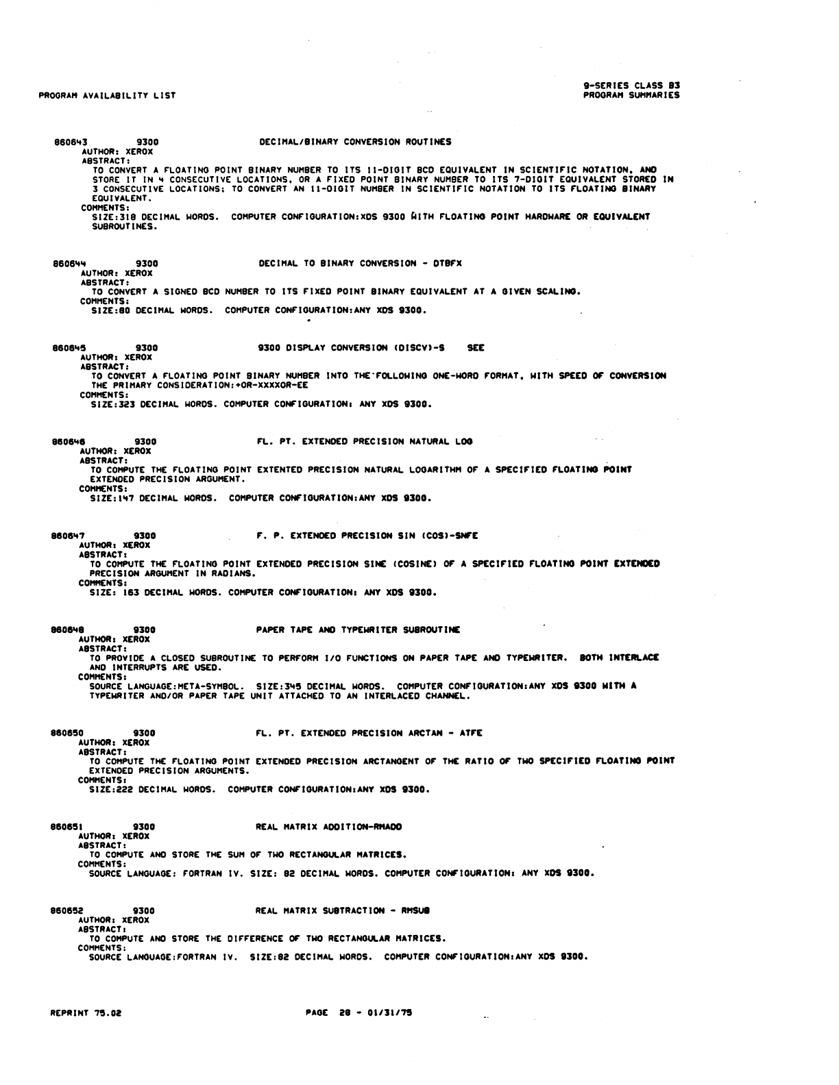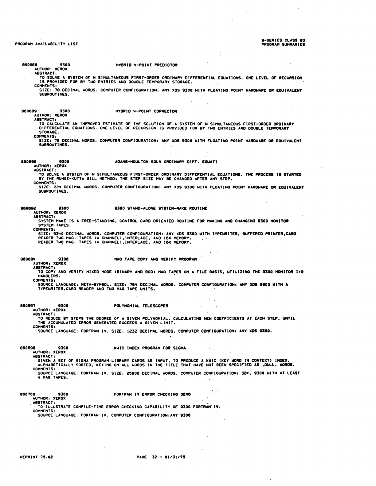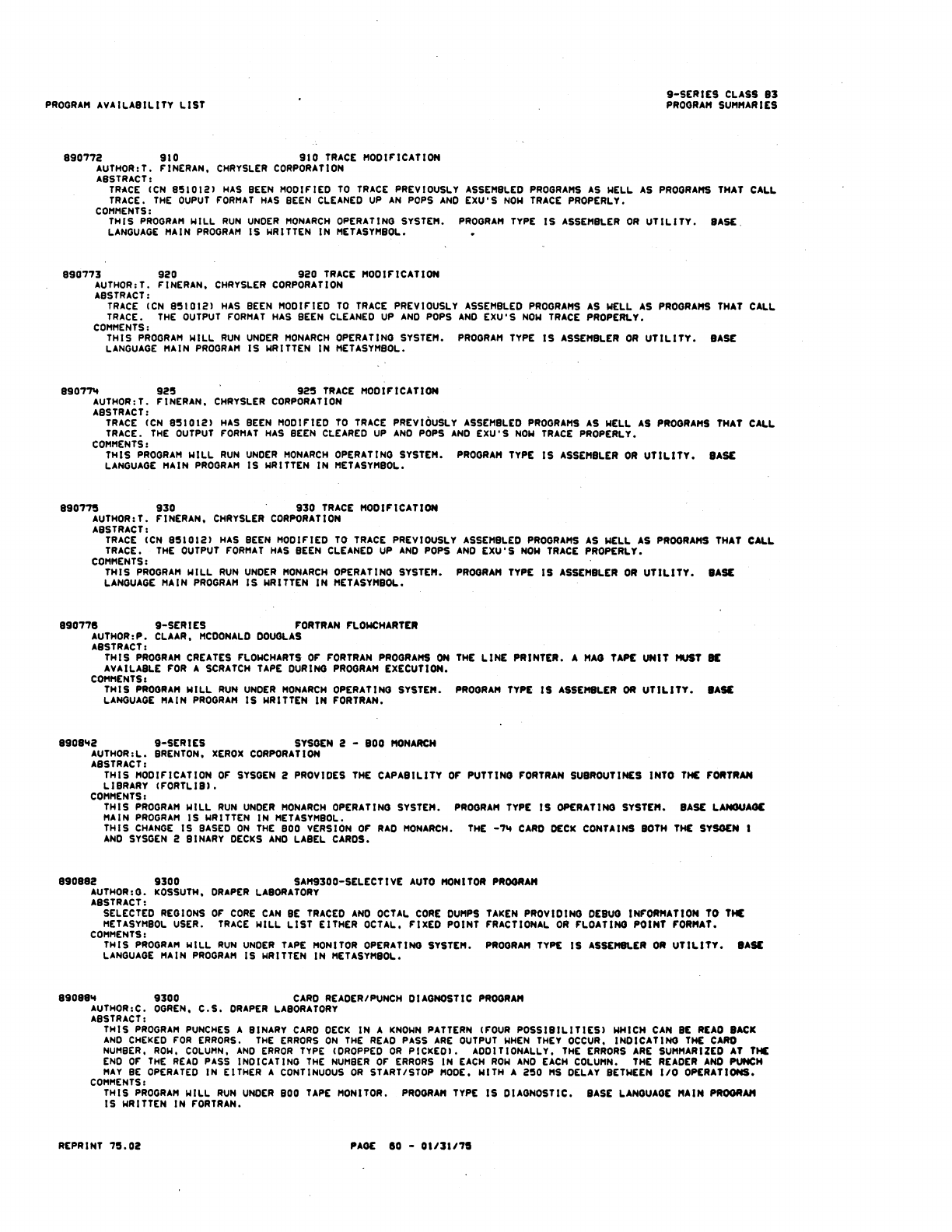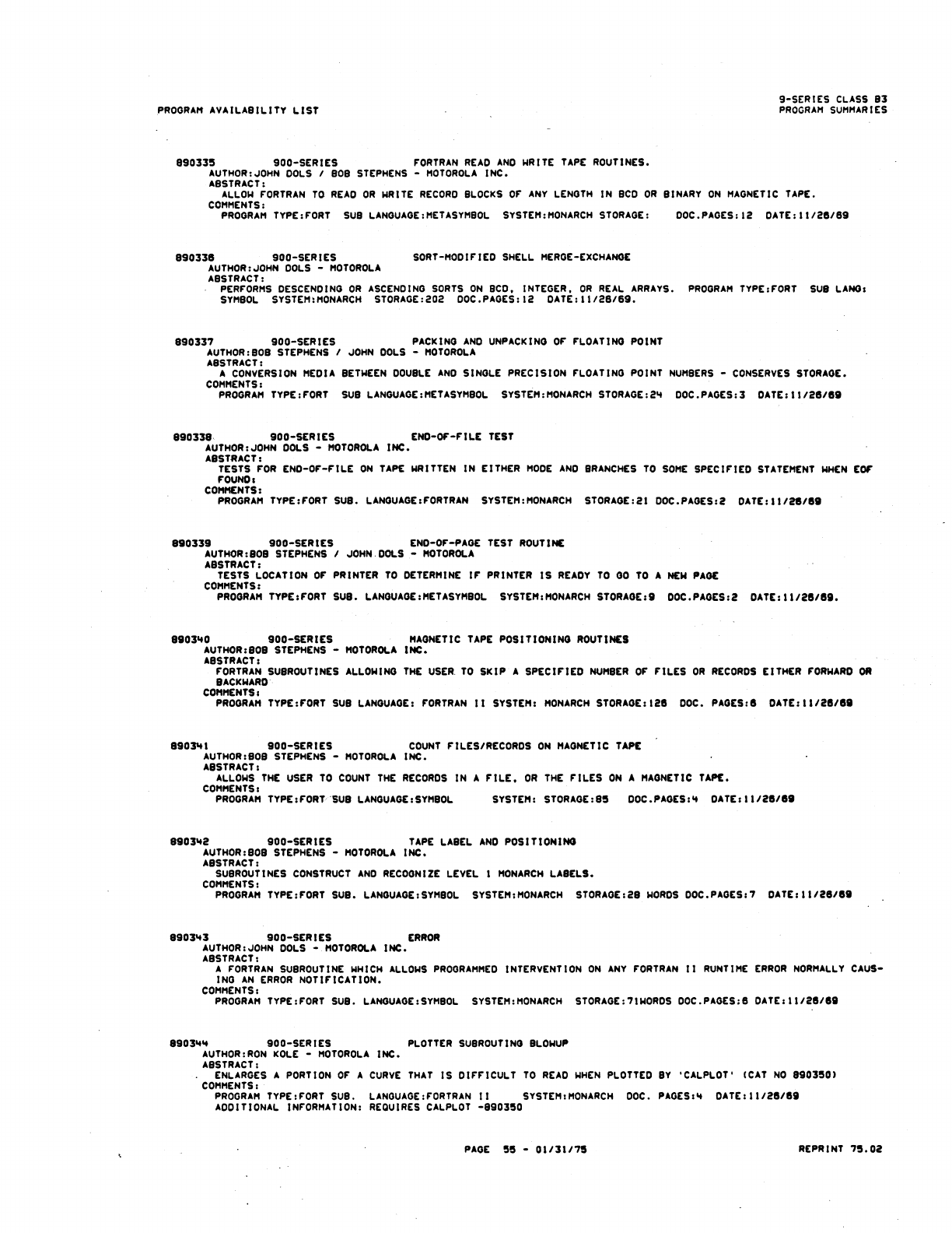 9xx_Program Libr_Feb75 9xx Program Libr Feb75