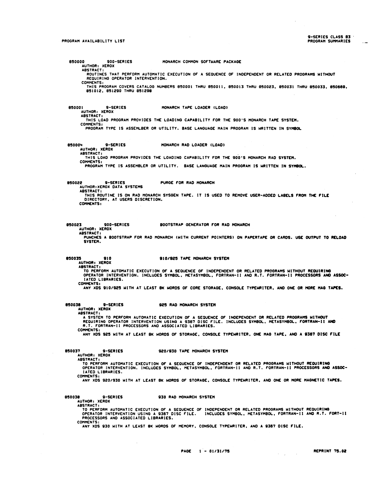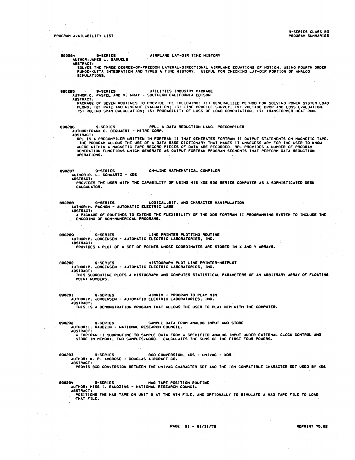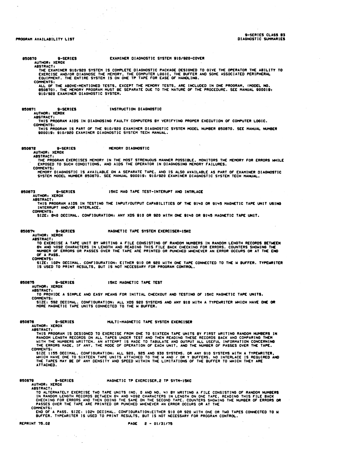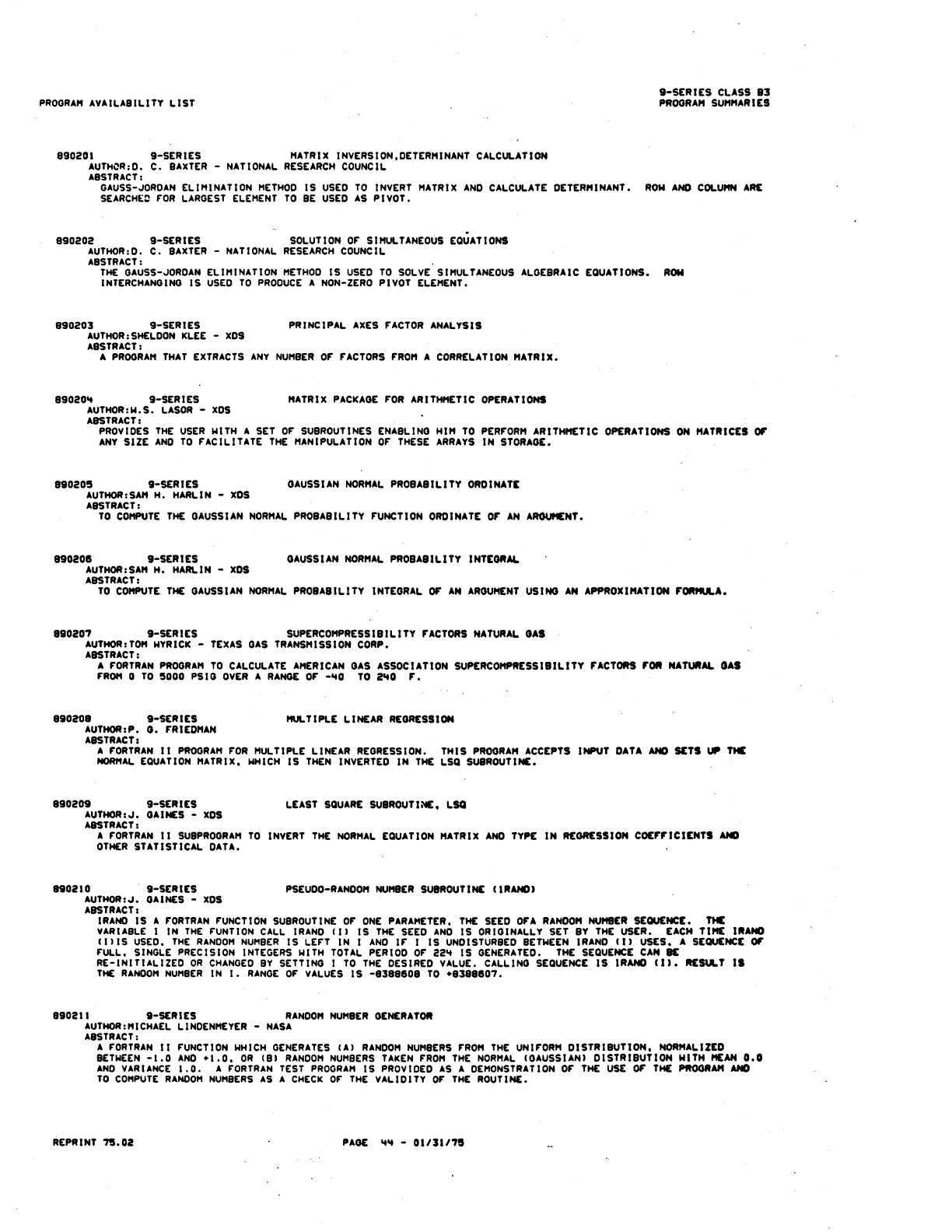 9xx_Program Libr_Feb75 9xx Program Libr Feb75