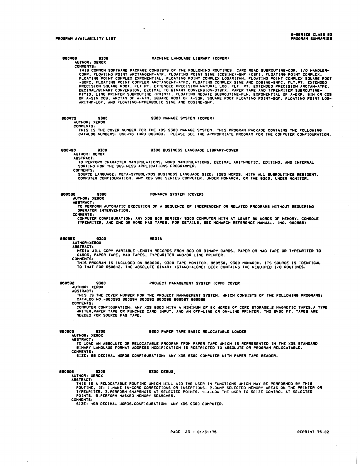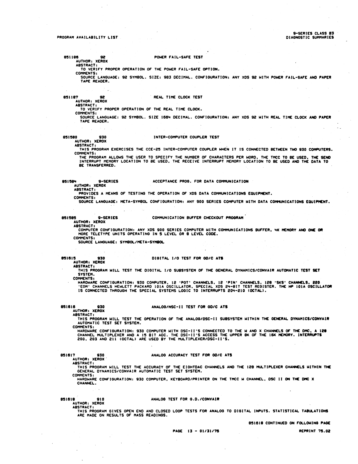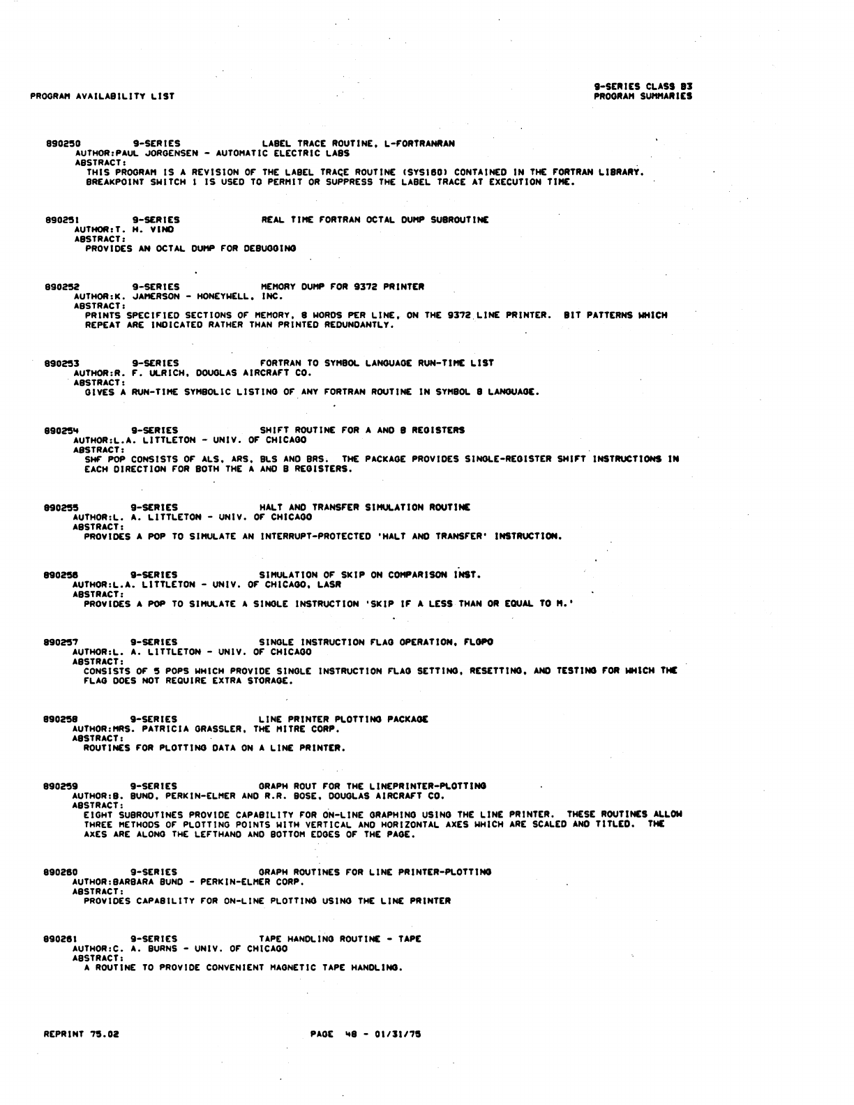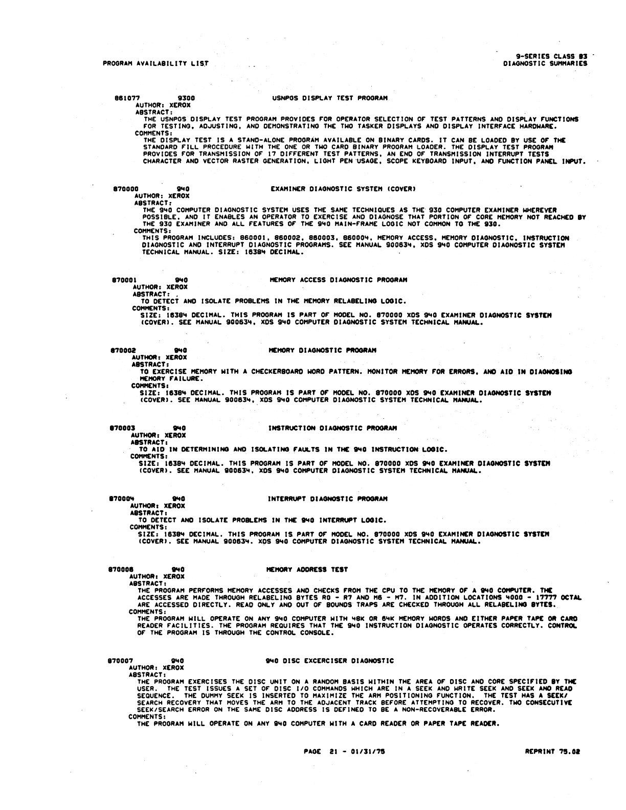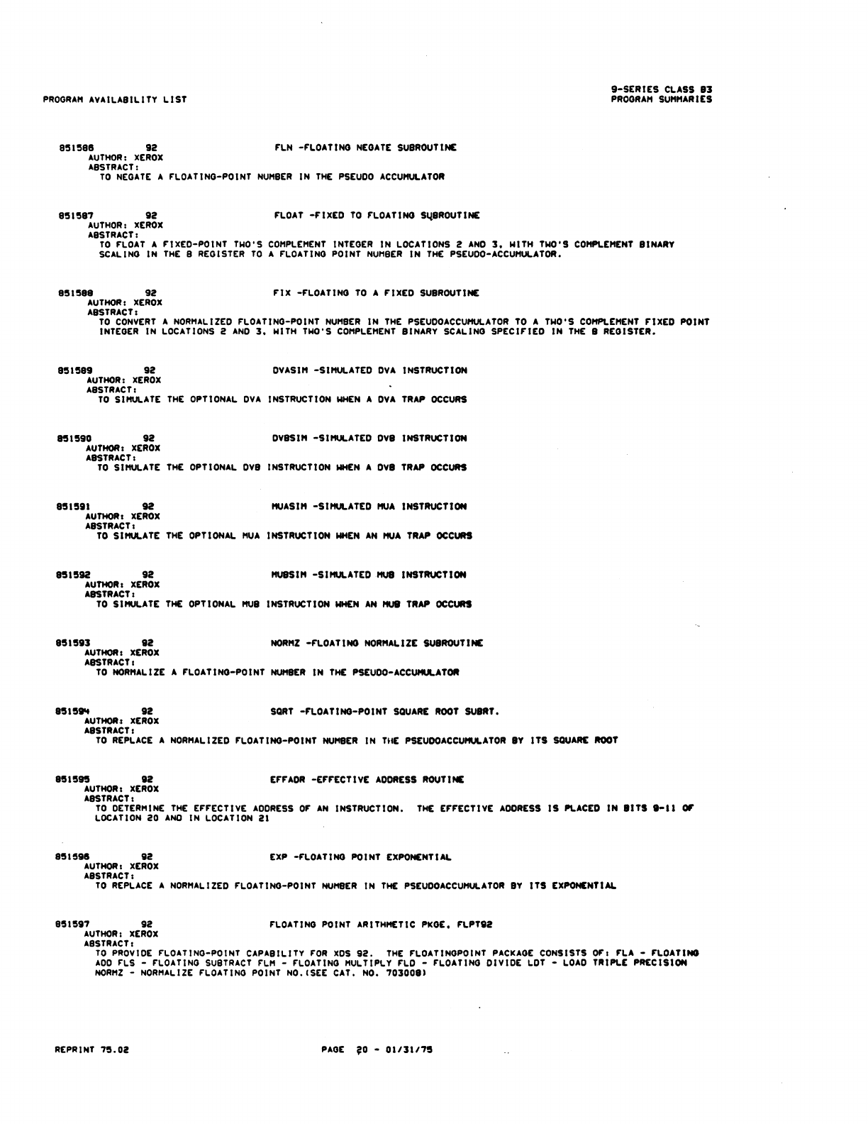 9xx_Program Libr_Feb75 9xx Program Libr Feb75