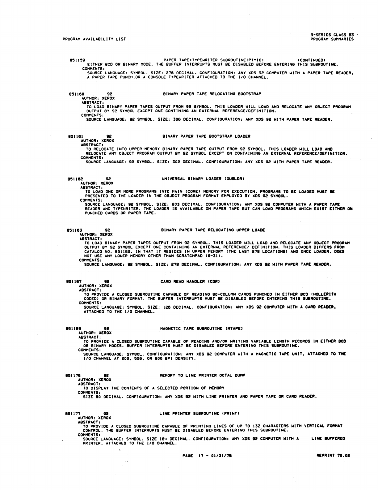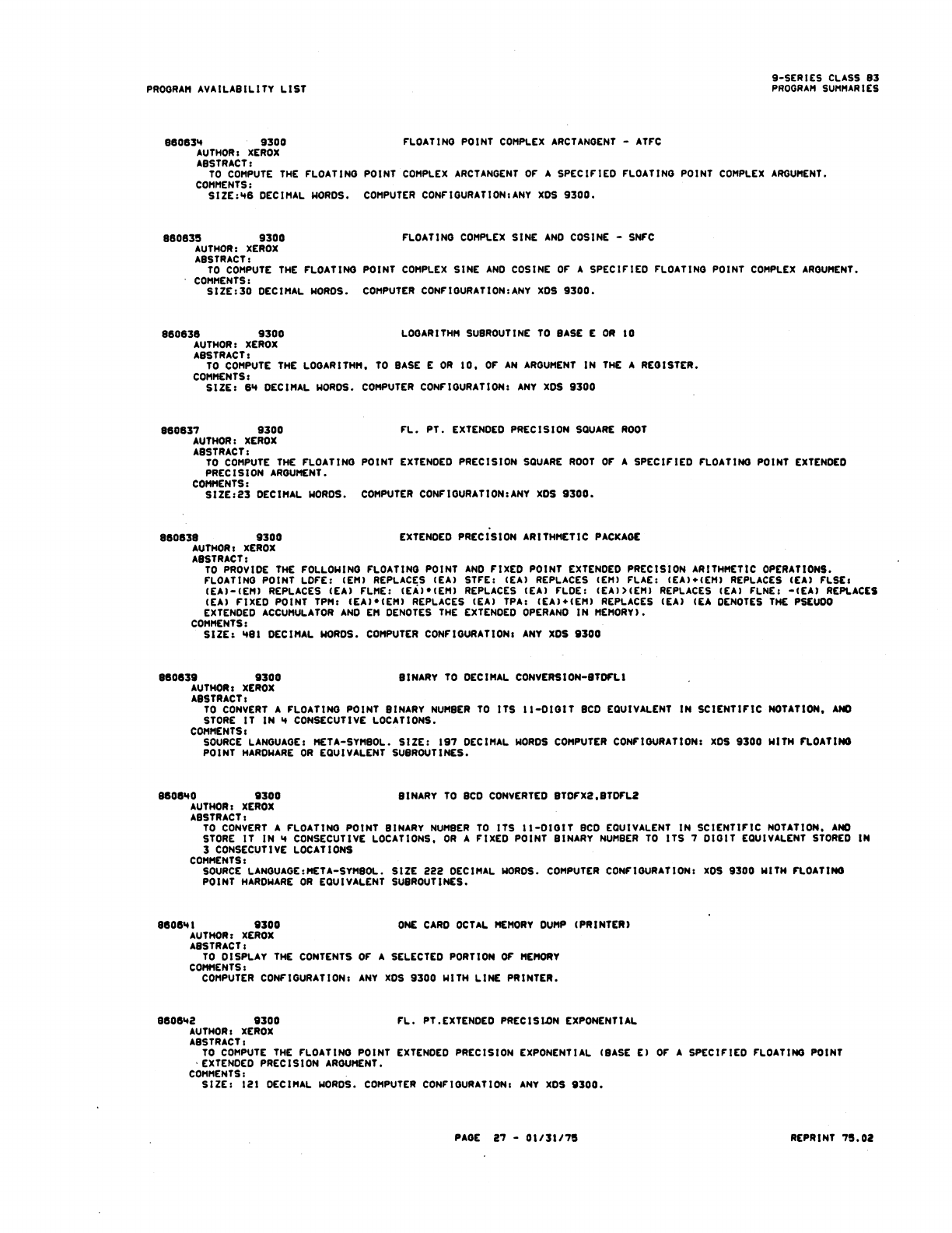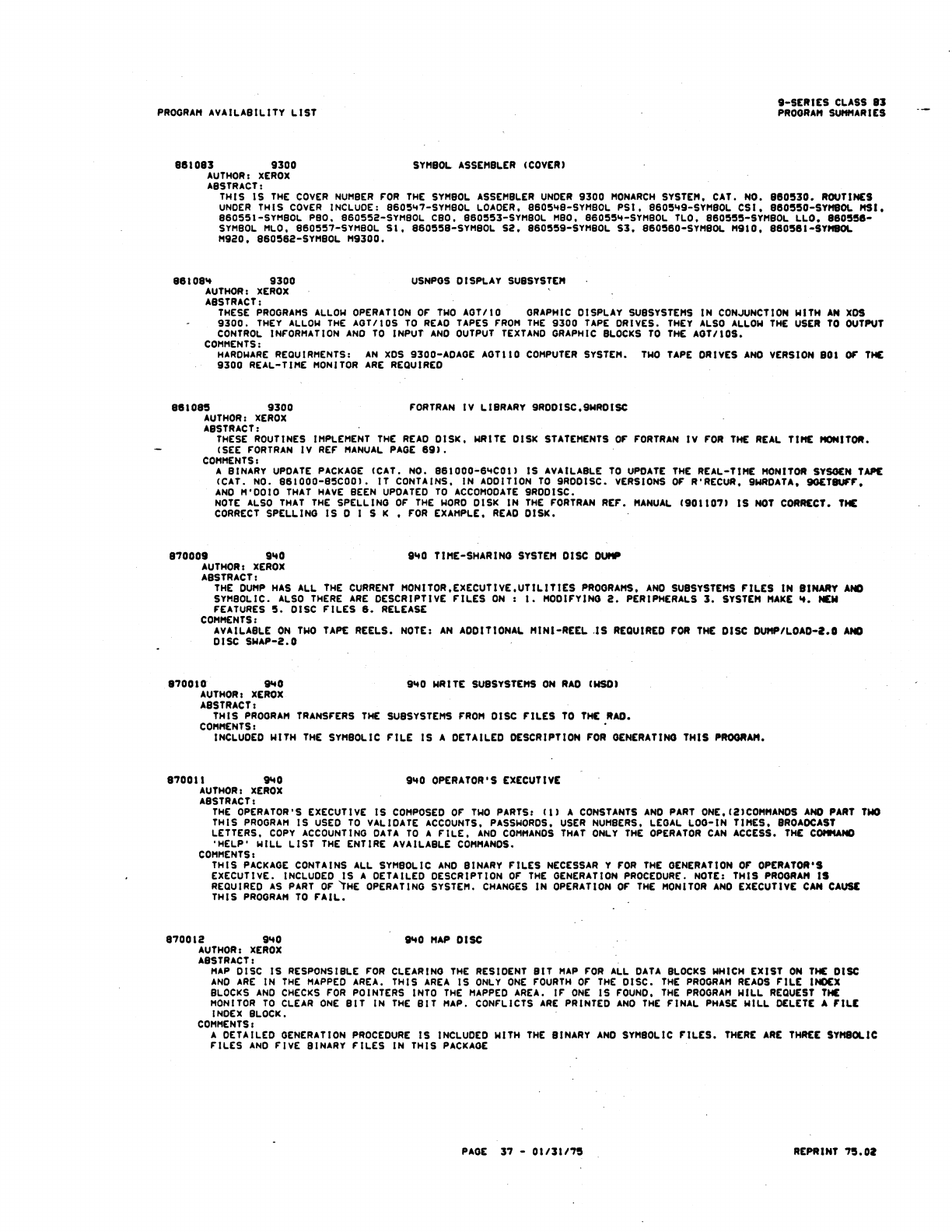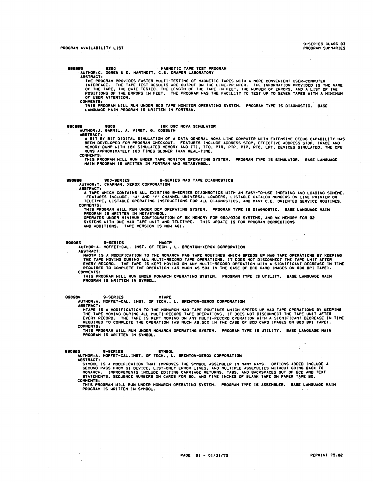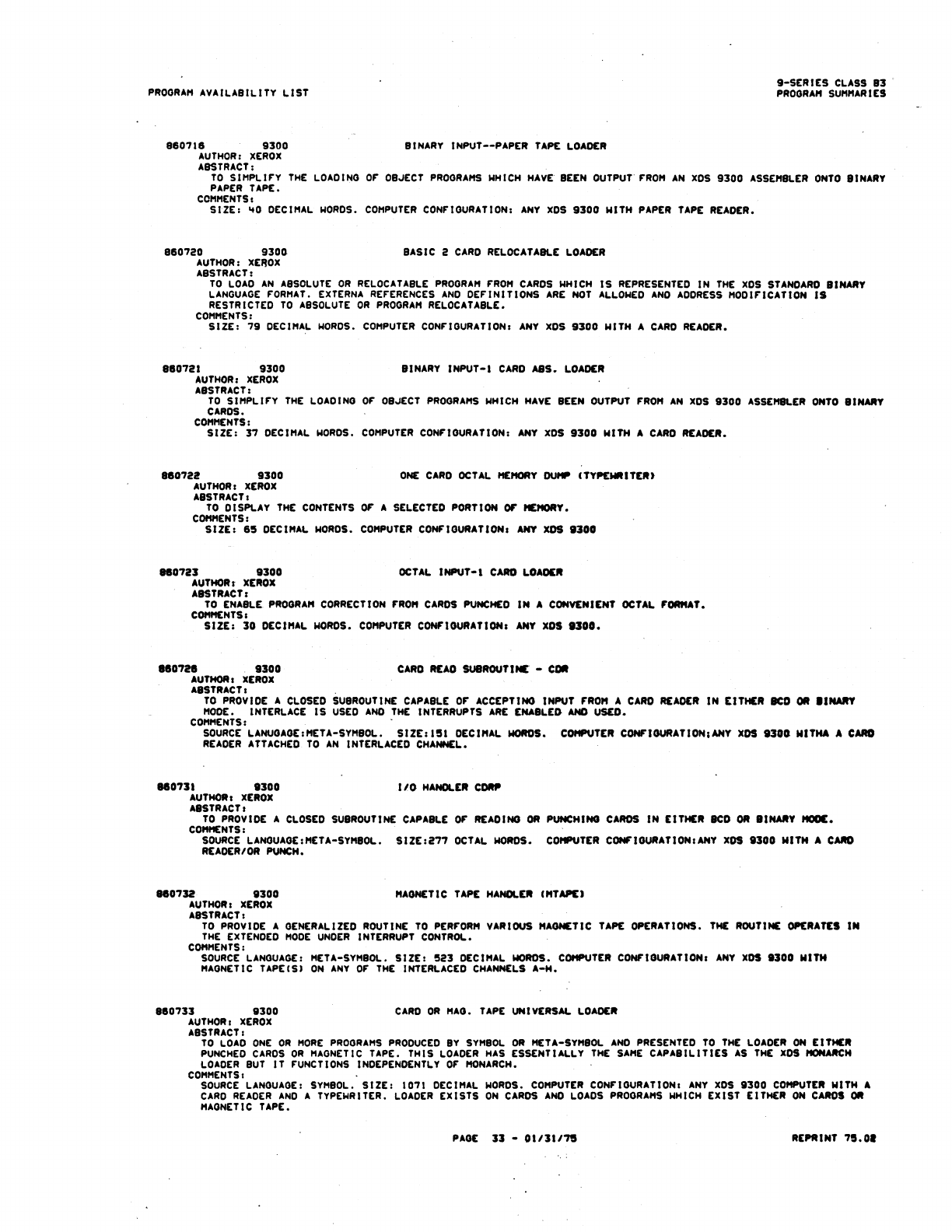 9xx_Program Libr_Feb75 9xx Program Libr Feb75