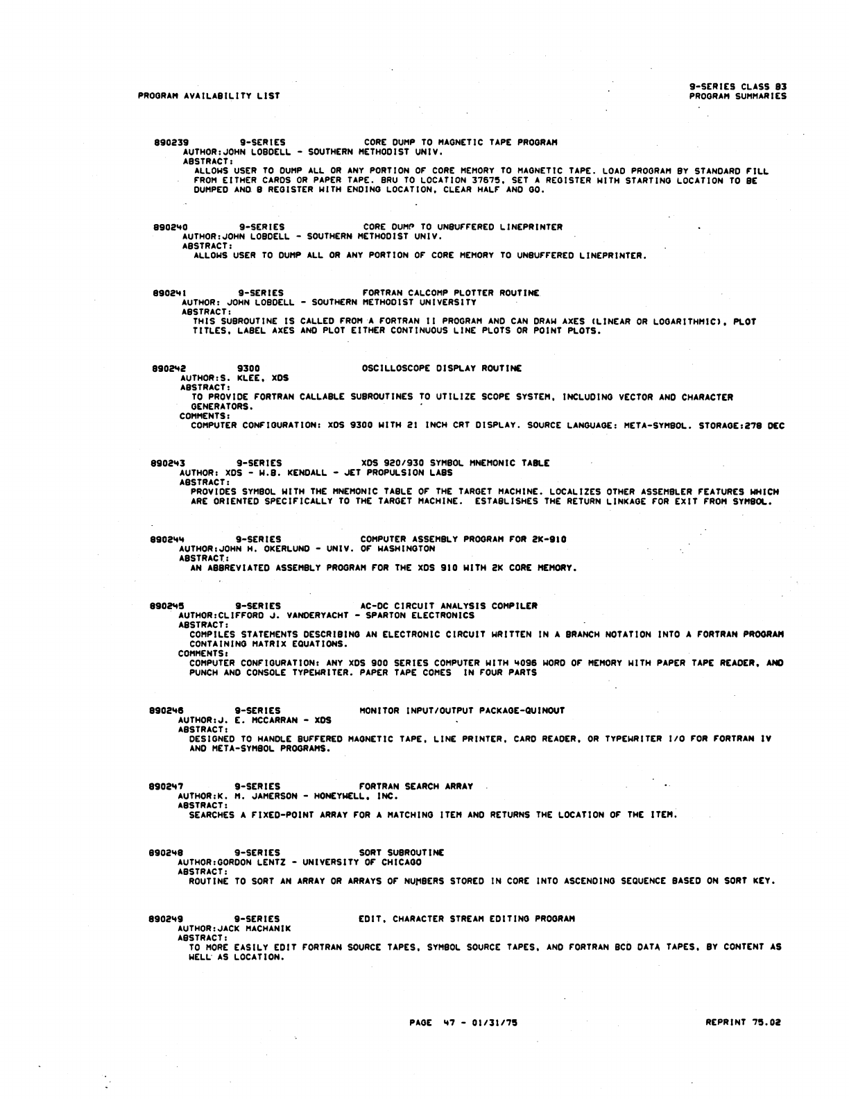 9xx_ProgramLibr_Feb75 9xx_ProgramLibr_Feb75