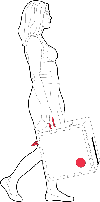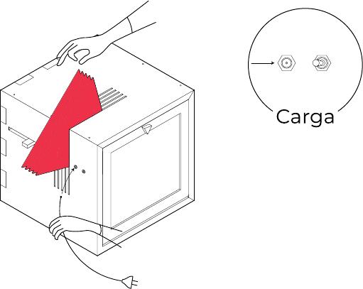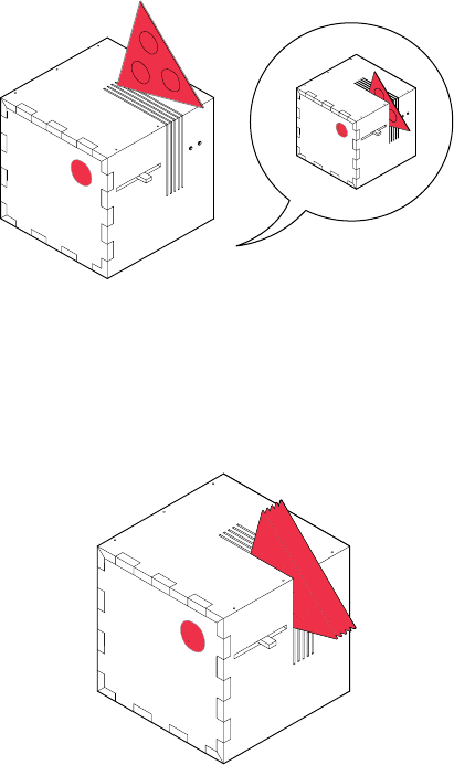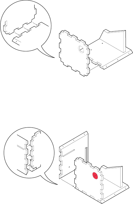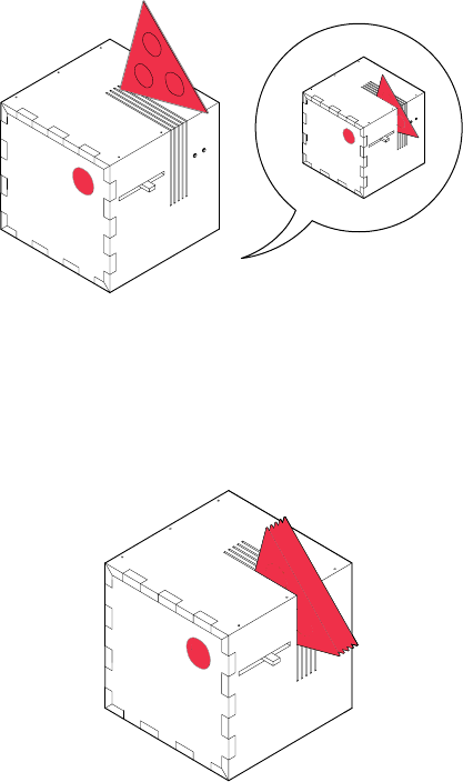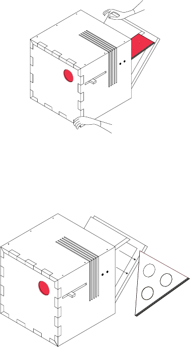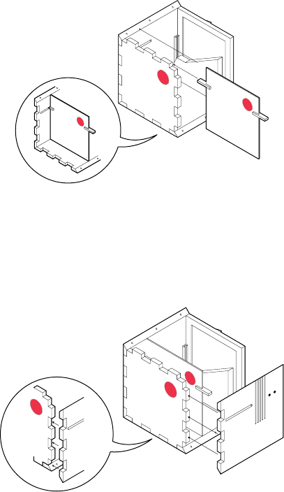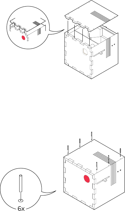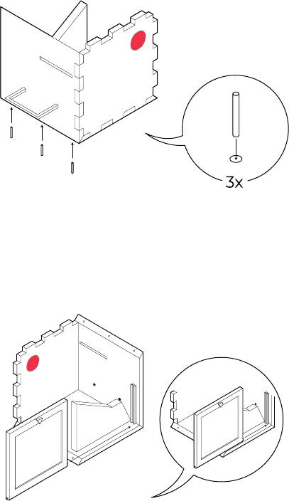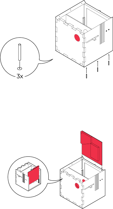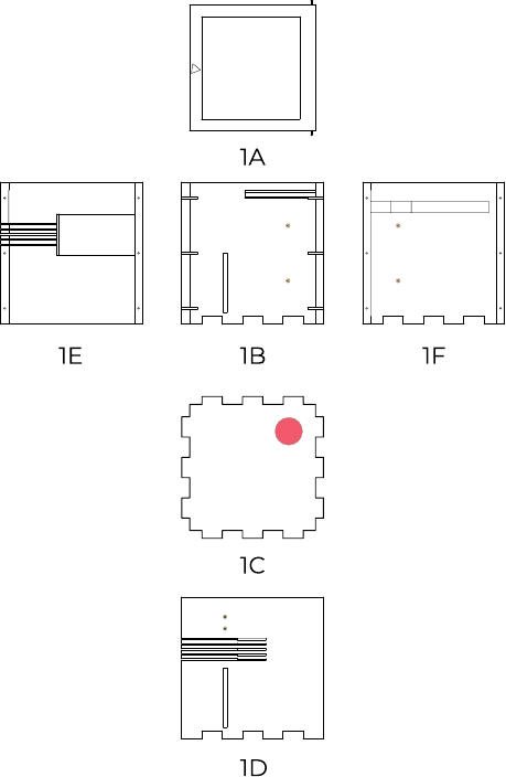 Insert the back door’s pivot (1A) into the lateral face hole (1E).