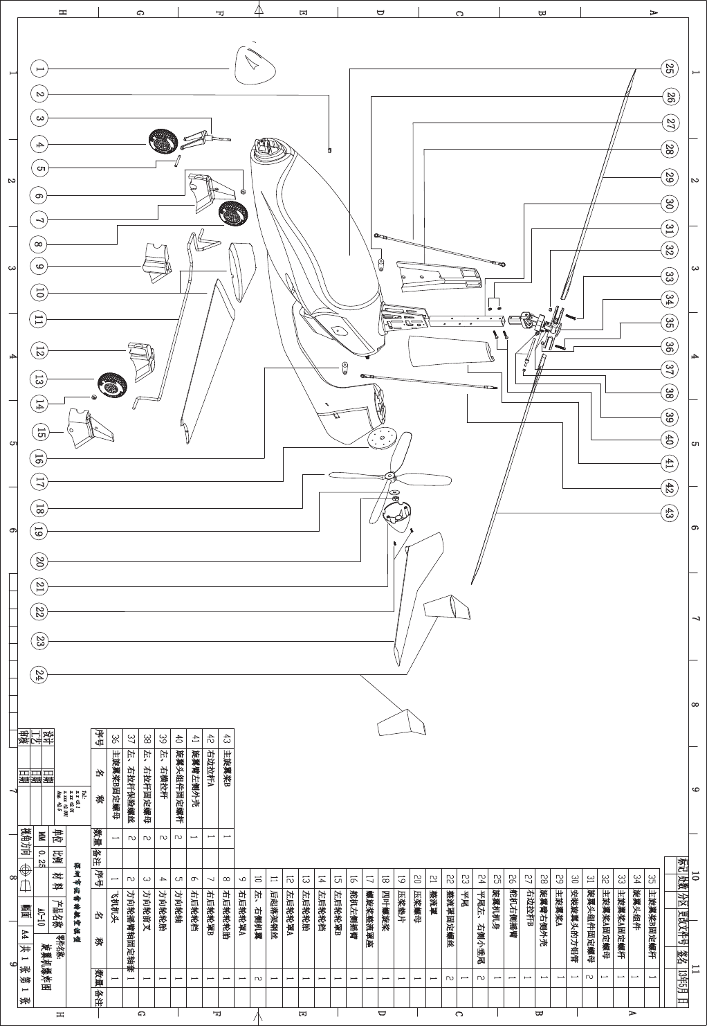推力桨(1) 浆罩(1) 左机翼(1) 右机翼(1)
