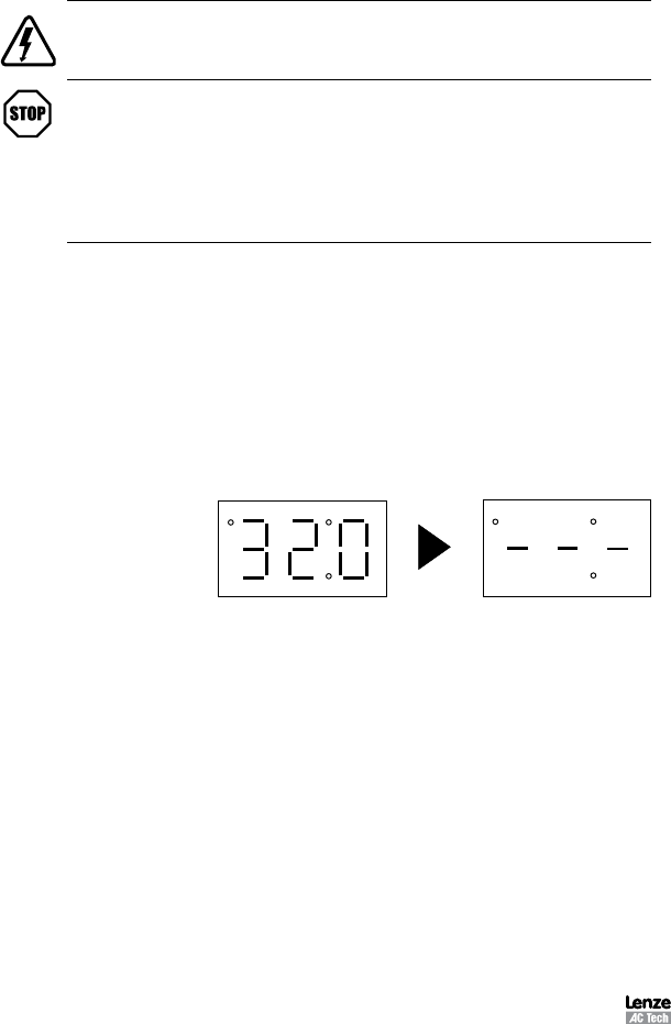 If the drive is in a STOP state (indicated by "- - -" on the display), and the commanded