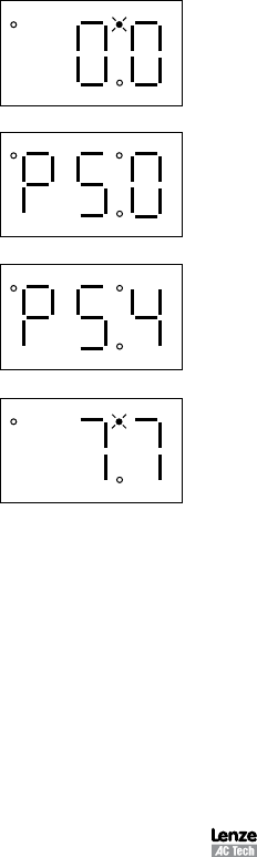 DECEL OVERRIDE (both upper decimal points blinking): The drive has stopped decelerating