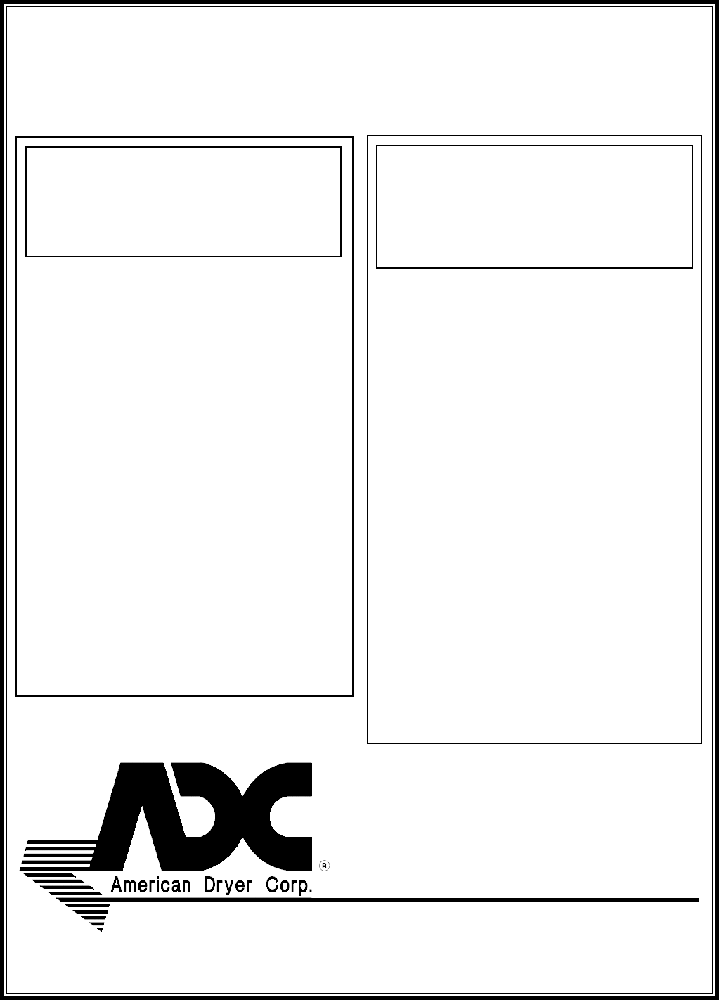 User Manual: American Dryer Corp. Clothes Dryer AD-30