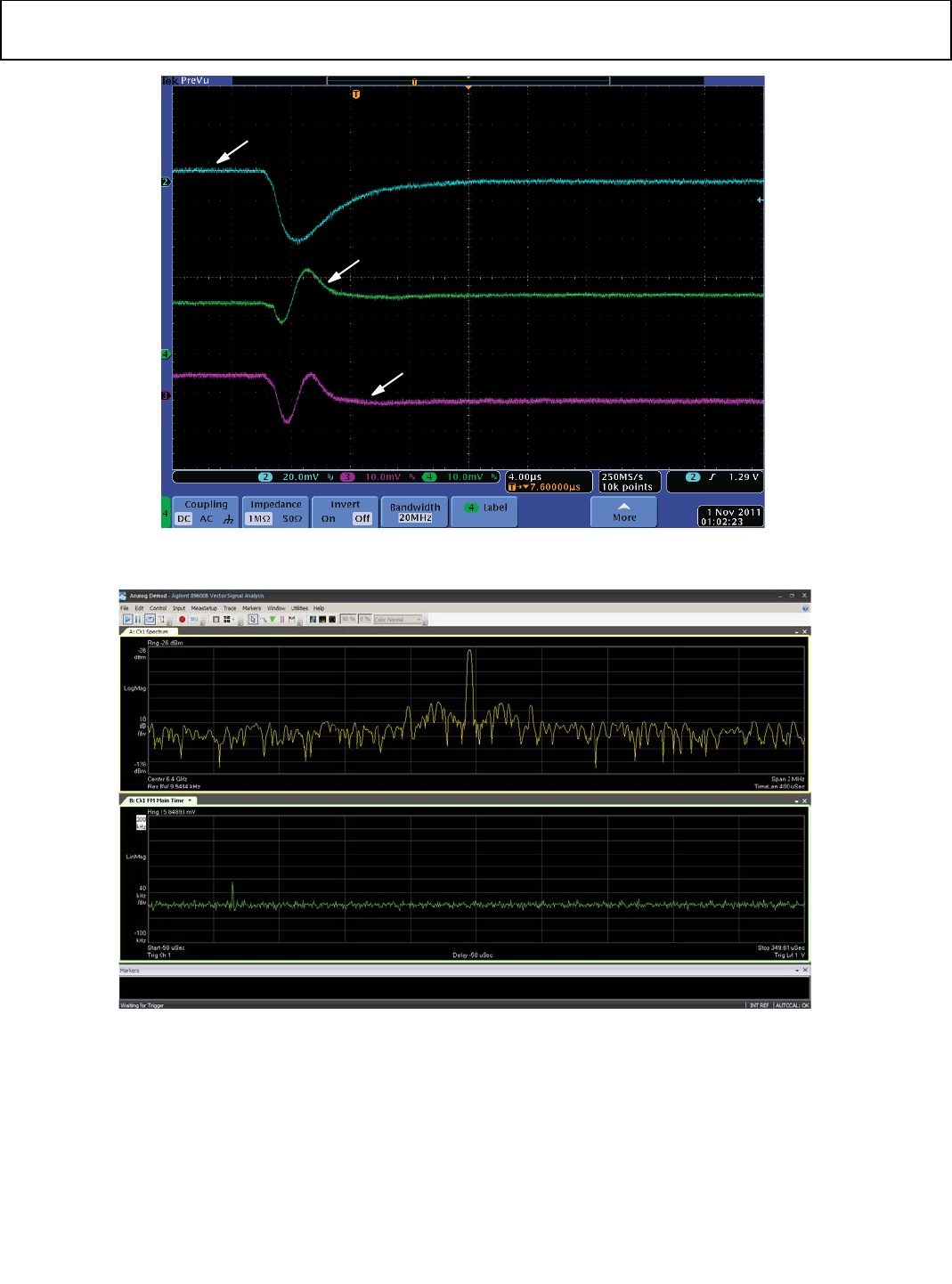 instantaneous change in the Vtune voltage. Screenshots in
